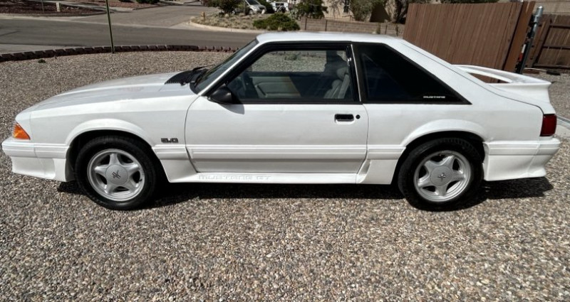 1992 Ford Mustang, white, 82, 700 miles, rebuilt 302 70mm throttle body, bigger injectors, fresh paint: Pure white base Peruvian Pearl White midcoat, minor dents on driver rear quarter, H Pipe, no cats, Flowmaster exhaust, new brakes all around, new steering rack, new aluminum radiator, new clutch & flywheel, few rear axle seals, fresh fluid in t5 trans and rear differential, new interior parts, runs great, zero issues, no leaks.. Provenance : New Mexico. Disponibilité : environ 7 semaines, clés en main. 17 000 € tout compris (importation, taxes, procédure d'immatriculation). Annonce publiée le 27/11/2025