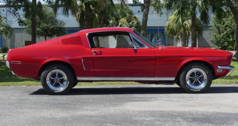 1968 Ford Mustang Fastback, Candyapple Red exterior, Black interior, 302 CID V8 engine, 4 Speed Manual transmission, RWD. Provenance : Florida. Disponibilité : environ 7 semaines, clés en main. 69 000 € tout compris (importation, taxes, procédure d'immatriculation). Annonce publiée le 28/11/2025