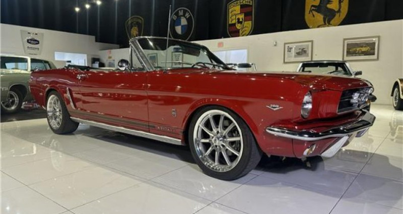 1965 Ford Mustang Convertible, Rangoon Red, Black leather upholstery, 289 V8, 3-speed manual transmission, power steering, front disc brakes, power convertible top, REV wheels, floor-mounted shifter, bucket seats, RWD, 36, 500 miles (TMU), clean title, 289 V8 engine. Provenance : Florida. Disponibilité : environ 7 semaines, clés en main. 42 500 € tout compris (importation, taxes, procédure d'immatriculation). Annonce publiée le 28/11/2025