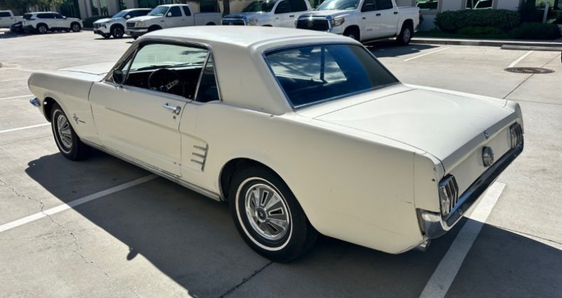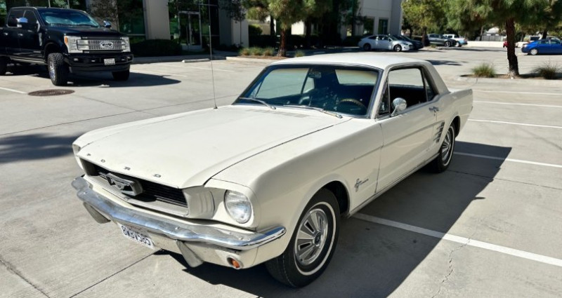 1966 Mustang coupe, 6cyl, 200ci automatic, daily driver. New black standard interior, new headliner, door panels, arm rests, handles, shifter assembly, dash gauge panel, and gauges. Newer long block from early 70s Mavrick engine, runs strong, no oil leaks. Dry body, absent of under body and frame rust. Good tires (tread is old, should be replaced for safety). Runs and drives straight with good brakes. Wipers, radio, and heater blower motor not operational. Clean California title and registration current. Located in Lakeside, California (92040). Provenance : California. Disponibilité : environ 7 semaines, clés en main. 19 000 € tout compris (importation, taxes, procédure d'immatriculation). Annonce publiée le 29/11/2025