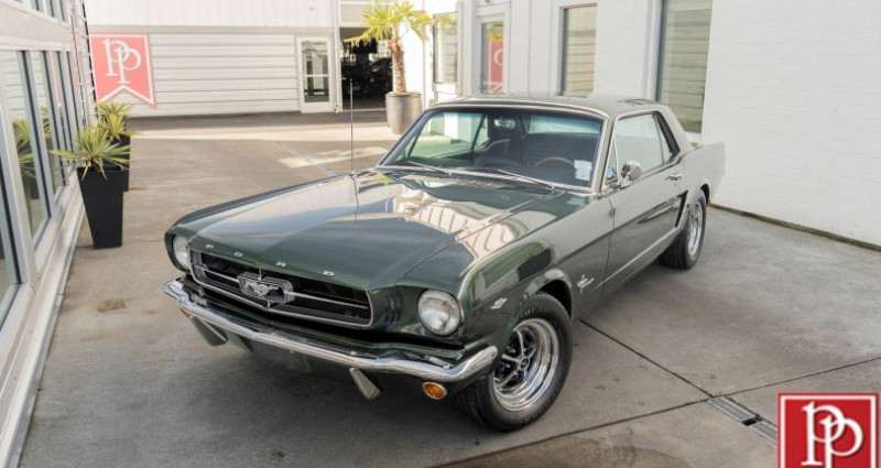 1965 Ford Mustang Coupe, Ivy Green, Black Interior, Coupe Body Type, Automatic Transmission, Rear Wheel Drive, 289ci V8, 10:1 Compression Ratio, 4bbl Carburetor, Rebuilt Heads, C4 Automatic Transmission, Power Steering, Front Disc Brakes, Magnum 500 Wheels, Radial T/A Tires. Provenance : Washington. Disponibilité : environ 7 semaines, clés en main. 40 000 € tout compris (importation, taxes, procédure d'immatriculation). Annonce publiée le 30/11/2025