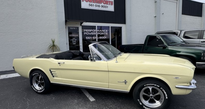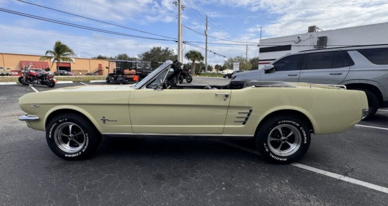 1966 Ford Mustang Convertible, 4.7L, yellow exterior, black interior, clean title, 80, 593 miles, numbers matching, excellent condition, no rust, 289 ci V8 rebuilt, automatic transmission, updated A/C and A/C lines, new compressor, new wheels and tires, new fuel tank, fuel lines, and fuel pump, new 4-wheel disc brakes, automatic new top and new cylinders, upgraded LED instrument lights, new exhaust, new shocks, new battery, black upholstery in excellent condition.. Provenance : Florida. Disponibilité : environ 7 semaines, clés en main. 47 500 € tout compris (importation, taxes, procédure d'immatriculation). Annonce publiée le 30/11/2025