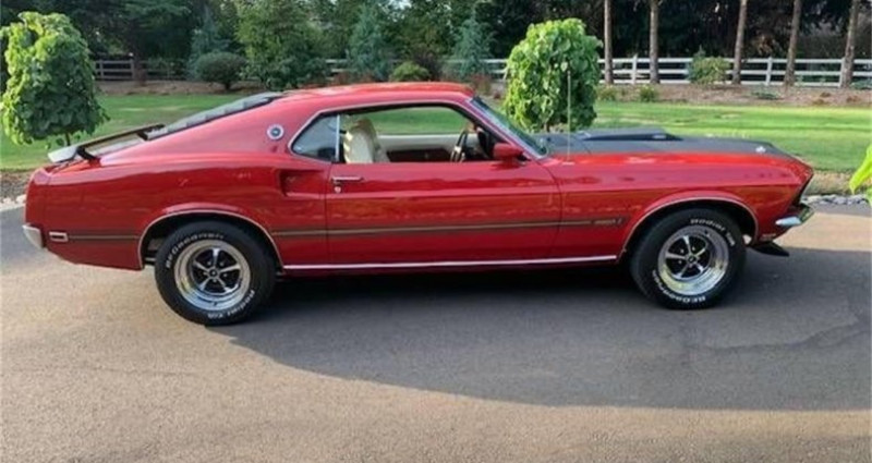 1969 Ford Mustang Mach 1. Moteur 351W, 5.8 L Ford V8 avec Kit de Changement de Vitesses. Boîte mécanique à 3 vitesses avec Kit de Changement de Vitesses. Empattement arrière Ford 9in. Peinture en Candy Apple Rouge avec Capot et capot arrière noir, avec bande Mach 1. Sièges avant en vinyle adjustables blancs avec bande rouge. Freinage avant à piston moteur. Servosteering. Carburette à 4 branches Edelbrock 4-barrel. Volant en bois grains original. Accents de tableau de bord et console en bois grains originaux. Siège arrière rabattable. Rétroviseur latéral conducteur réglable à distance. Radio AM/FM/Cassette original. Spoiler avant. Boutons de fixation du capot. Dépoussièreur du capot avec clignotants intégrés. Deux miroirs de sport extérieurs. Réglage des rouleaux arrière. Régleur de spoiler arrière. Jantes 15 avec pneus BF Goodrich Radial nouveaux. Mise au point : Excellent / Superb. Mise au point : 77, 000 milles. Provenance : Oregon. Disponibilité : environ 7 semaines, clés en main. 72 500 € tout compris (importation, taxes, procédure d'immatriculation). Annonce publiée le 01/12/2025