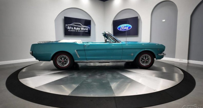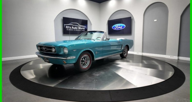 1965 Ford Mustang Convertible - V8 engine, 289 cubic inch - Automatic transmission - Power steering - Power disc brakes - Detailed engine bay - Chrome engine accessories - Dual exhaust with threw valance tips - 14 chrome plated styled steel wheels - Coker double red line radial tires - Twilight Turquoise metallic exterior - Chrome driving mirrors - Luggage rack - Fog light grille - White convertible top - Turquoise and white luxury interior - Pony embossed seats - GT gauge cluster - Wood grain dash trim - Center console - AM/FM/Cassette radio. Provenance : Florida. Disponibilité : environ 7 semaines, clés en main. 52 000 € tout compris (importation, taxes, procédure d'immatriculation). Annonce publiée le 30/11/2025