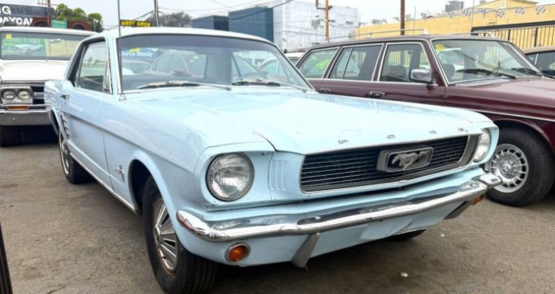 - 1966 Ford Mustang - 6-Cylinder - 3-Speed Manual Transmission - Manual Brakes - Rebuilt engine - Rebuilt carburetor - Fresh tune and fluids - New radiator - New battery - Original paint - No reported accidents - California car since new - Starter Mustang - VIN-6F07T71770 - Sold AS IS with no warranty - California dealer for over 20 years - California buyers: Document Fee $80, registration, applicable sales tax - Out-of-state and international buyers: Document Fee $80, Transfer Fee $15 - Buyer responsible for shipping costs - Auction may end early - Contact details: 310-253-9977, 310-849-4920 (cell), Whatsapp: 310-849-4920 - CA Dealer # 60055, 8931 Venice Blvd., Los Angeles, CA. 90034. Provenance : California. Disponibilité : environ 7 semaines, clés en main. 20 000 € tout compris (importation, taxes, procédure d'immatriculation). Annonce publiée le 02/12/2025