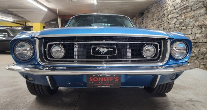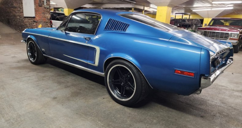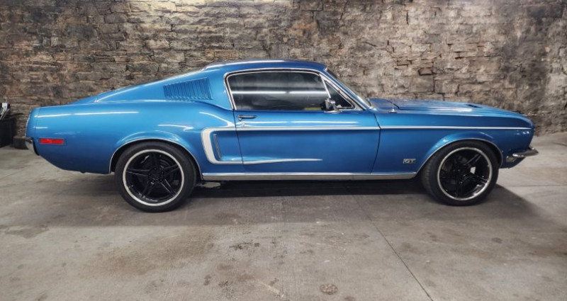 - 1968 Ford Mustang GT Fastback - J-code 302 - High option car - Top loader 4 speed - Factory air conditioning (disabled) - Fold-down backseat - Power steering - Dual exhausts - Minor modifications: - Custom wheels - 18 tires - Traction bars - Swapped front buckets for comfy driving buckets - Acapulco Blue with white stripes paint - Fair paint condition with blistering - Rock-solid undercarriage - Rust-free quarter panels and fenders - Potential underlying rust near sail panel air vents on both sides - Marti-report - Originally ordered as an automatic car, converted to factory 4 speed - Factory buckets easily found, upholstery in stock with every manufacturer - Possibility of underlying rust near sail panel air vents on both sides. Provenance : Colorado. Disponibilité : environ 7 semaines, clés en main. 47 000 € tout compris (importation, taxes, procédure d'immatriculation). Annonce publiée le 02/12/2025