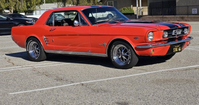 - Année : 1966 - Modèle : Ford Mustang - Type de carrosserie : Coupé - Propriétaire depuis : plus de 5 ans - Couleur : Orange vif - Titre : Propre - Mileage : 8600 miles - Motorisation : Non précisée - Roues : Rallye noires - Intérieur : Noir, avec direction assistée, volant en bois - Équipement supplémentaire : Échappement double Flowmaster, intake Edelbrock, carburateur personnalisé, culasse électronique, freins à disques avant, instrumentation numérique, système audio amélioré - Vidéo du véhicule : Oui - État du véhicule : Bon état - État de la carrosserie : Bon état - Observation : Véhicule modifié, ancien appartenant à un homme décédé - Dépôts non remboursables : Oui. Provenance : California. Disponibilité : environ 7 semaines, clés en main. 31 000 € tout compris (importation, taxes, procédure d'immatriculation). Annonce publiée le 02/12/2025
