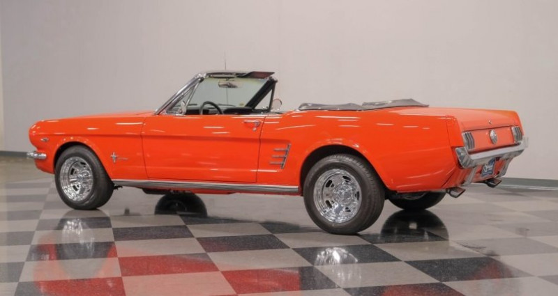 - Modèle : 1965 Ford Mustang - Moteur : V8, 289 ci - Boîte de vitesses : 4 vitesses manuelle - Couleur extérieure : Rouge Poppy - Couleur intérieure : Noir - Empattement : RWD - Bodystyle : Cabriolet - Équipement : Couverture cabriolet électrique, sièges Pony Package en cuir noir, barres de suspension renforcées, freins à disques avant, 2 roues de 15 pouces American Racing Chrome, pneus 205/60R15 devant et 215/60R15 arrière, radiateur en aluminium, collecteur d'admission long et échappement arrière amélioré, carburateur 4-barrel, système d'échappement avec deux tuyaux, tachymètre monté sur colonne, volant manuel, freins manuels. - Pièces supplémentaires : Mufflers aftermarket, long tube manifolds, upgraded strut mount bars, Bluetooth radio AM/FM.. Provenance : Tennessee. Disponibilité : environ 7 semaines, clés en main. 40 000 € tout compris (importation, taxes, procédure d'immatriculation). Annonce publiée le 02/12/2025
