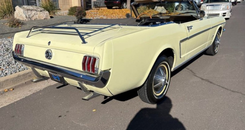 Ford Mustang cabriolet de 1965, couleur jaune printanier, intérieur Palomino, capote noire. Cette Mustang est équipée d'un moteur V8 289 CI et d'une transmission automatique d'origine qui vient d'être remise à neuf. Cette voiture est en très bon état et ne présente aucune trace de rouille. Elle dispose d'options d'origine intéressantes, d'une capote électrique, d'une radio AM/FM, d'une direction assistée et de freins à disque avant assistés. Près de 10 000 dollars de travaux ont été effectués sur le véhicule au cours de l'année dernière, notamment : une nouvelle transmission automatique reconstruite, de nouveaux freins avant Palomino, des rotors et des étriers, de nouveaux freins à tambour arrière, un nouveau maître-cylindre de frein, de nouveaux amortisseurs aux quatre coins, une pompe à essence électrique (la pompe mécanique est toujours en place), une pompe à huile Melling à haut débit, un nouveau joint arrière sur le moteur 289, un alignement récent, un différentiel arrière remis à neuf et de nouveaux joints à rotule supérieurs et inférieurs. Cette voiture est un vrai plaisir à conduire et fait sensation partout où vous allez. La carrosserie et la peinture sont en très bon état et toutes les pièces chromées sont en bon état. Prête à faire le bonheur de son nouveau propriétaire. Provenance : Colorado. Disponibilité : environ 7 semaines, clés en main. 35 500 € tout compris (importation, taxes, procédure d'immatriculation). Annonce publiée le 03/12/2025