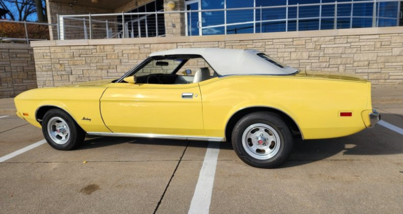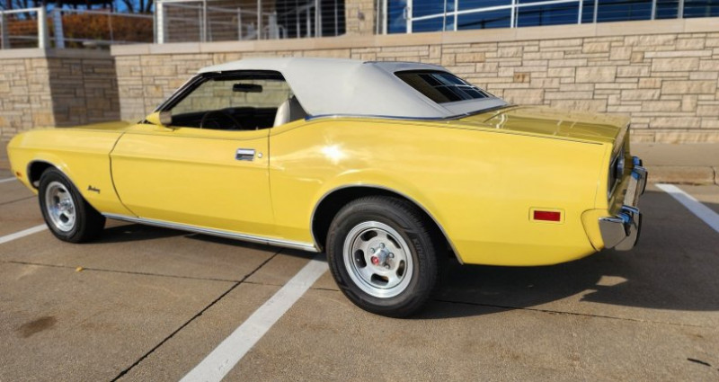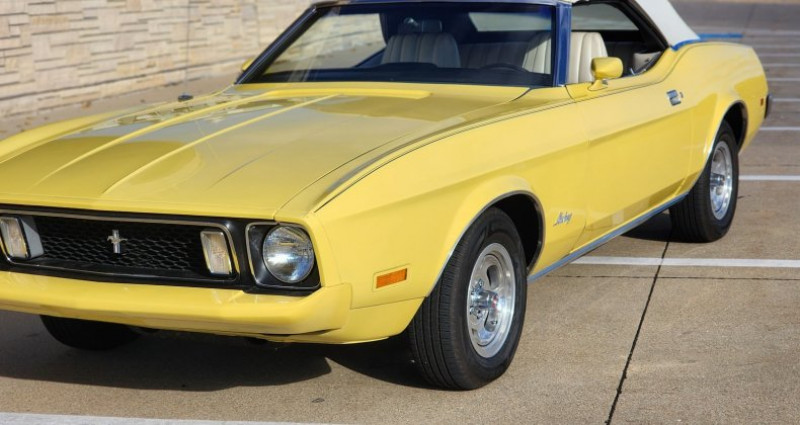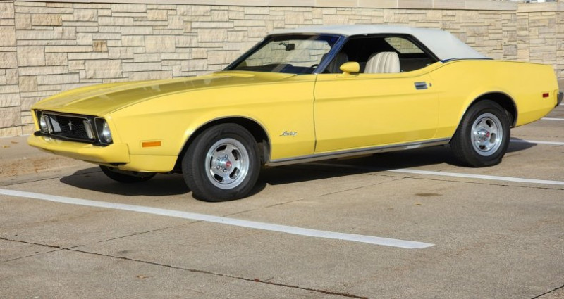 - Marque : Ford - Modèle : Mustang - Année : 1973 - Type de carrosserie : Cabriolet - Couleur extérieure : Jaune - Couleur intérieure : Blanc - Transmission : Automatique - Moteur : V8 - Boîte de vitesses : Manuelle au sol - Kilométrage : 37 411 miles (environ 60 217 km). Provenance : Iowa. Disponibilité : environ 7 semaines, clés en main. 30 500 € tout compris (importation, taxes, procédure d'immatriculation). Annonce publiée le 03/12/2025