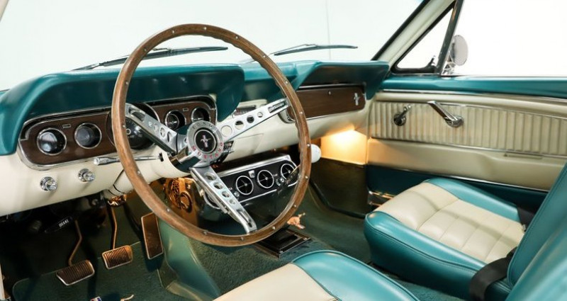 - Couleur extérieure : Wimbledon white - Intérieur : deux ton aqua et blanc, pony deluxe - Toit : vinyle - Jantes : 14x7 chrome GT - Moteur : 289, intake Weiand aluminium, carburateur Holley 4 barreaux, air cleaner HiPo - Climatisation : présente - Boîte de vitesses : 4-vitesse - Suspension et direction : récemment inspectée et entretenue - Réservoir de carburant : neuf - Rétrofit : air conditionné, freins fonctionnels, échappement double avec crossover pipe, Super Turbo mufflers et GT tips, idler arm et centre link remplacés, close ratio 4-vitesse reconstruit, arbre de transmission arrière résealé et rempli de nouveau fluide, plancher restauré et solide.. Provenance : , USA. Disponibilité : environ 7 semaines, clés en main. 54 000 € tout compris (import, taxes, procédure d'immatriculation). Annonce publiée le 06/12/2025