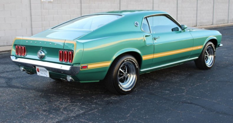 - Marque : Ford - Modèle : Mustang Mach1 - Année : 1969 - Couleur extérieure : Vert - Couleur intérieure : Noir - Type de carrosserie : Coupé - Transmission : Automatique - Boîte de vitesses : C-6 - Moteur : 428 Super Cobra Jet - Kilométrage : 60 156 miles - État du titre : Propre. Provenance : Arizona. Disponibilité : environ 7 semaines, clés en main. 118 500 € tout compris (importation, taxes, procédure d'immatriculation). Annonce publiée le 08/12/2025