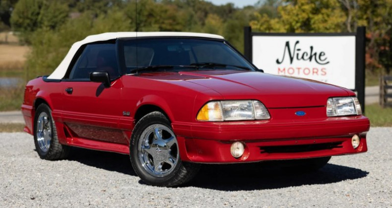 - Marque : Ford - Modèle : Mustang - Année : 1989 - Version : GT - Couleur : Inconnu (pas mentionné) - Kilométrage : 47 000 miles (environ 75 600 km) - État : Bien aimé pendant 31 ans par les propriétaires successifs - Équipement : Toit convertible électrique fonctionnel, radio original fonctionnel - Travaux : Pneus neufs sur roues en chrome pony, alternateur amélioré, moteur de démarrage remplacé, batterie et montants moteur remplacés, nouvelles ceintures de sécurité, Bullitt shift knob ajouté - Travaux non effectués : Aucune modification hors les roues en chrome pony et le Bullitt shift knob, aucun subframe connectors ajouté. Provenance : Tennessee. Disponibilité : environ 7 semaines, clés en main. 26 000 € tout compris (importation, taxes, procédure d'immatriculation). Annonce publiée le 10/12/2025