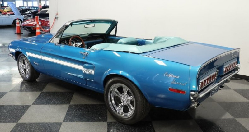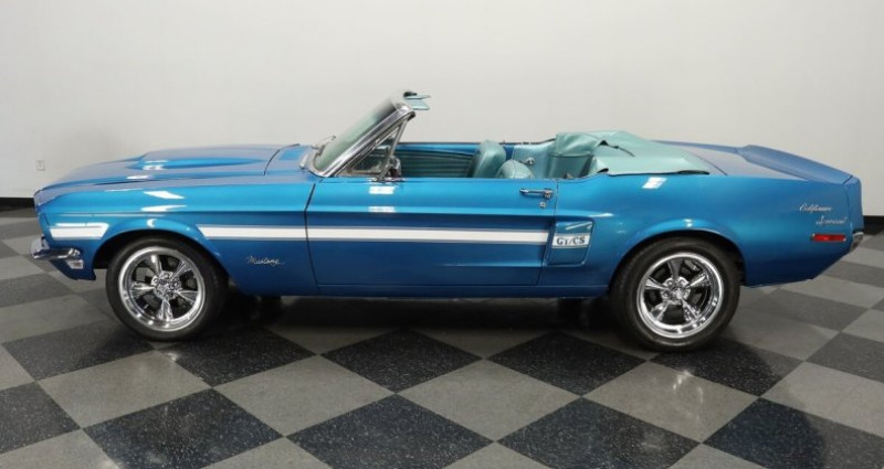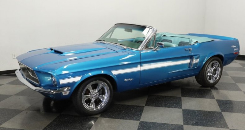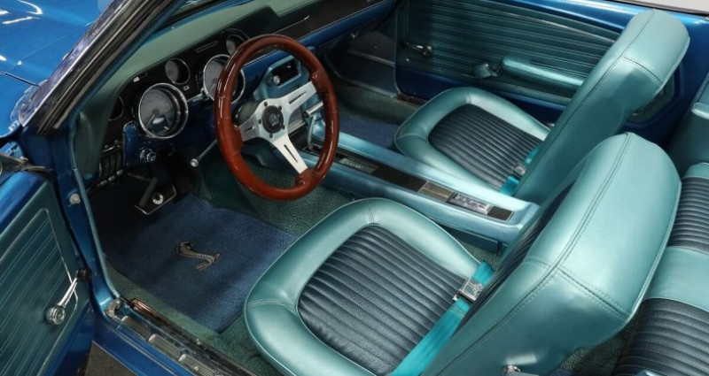 - Marque : Ford - Modèle : Mustang - Année : Non spécifié - Moteur : 302 V8 - Boîte de vitesses : Automatique 3 vitesses - Transmission : RWD - Couleur extérieure : Gulfstream Aqua - Intérieur : Bleu - Toit : Tissu blanc convertible - Roues : 17 US Mags - Pneus : 205/50ZR17 (avant) et 235/55ZR17 (arrière) - Équipements : Direction assistée, freins à disque avant, freins assistés, capot GT350-style, grille billet, prises d'air latérales, feux arrière Thunderbird-style, échappements à double sortie avec silencieux Turbo Mufflers, panneaux et panneaux intérieurs bleus, tableau de bord Dakota Digital, système audio Retrosound, boîte de vitesses au sol avec manette centrale, frein de stationnement, capot et coffre en fibre de verre.. Provenance : Florida. Disponibilité : environ 7 semaines, clés en main. 51 500 € tout compris (importation, taxes, procédure d'immatriculation). Annonce publiée le 11/12/2025