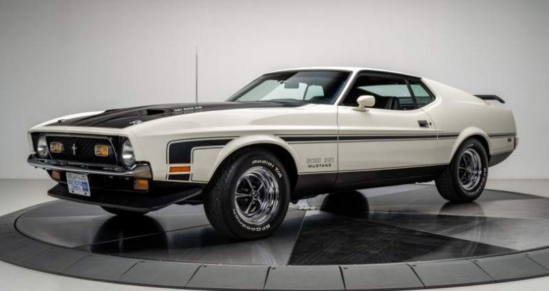 - Marque : Ford - Modèle : Mustang - Année : 1971 - Type de carrosserie : Coupe - Moteur : 351 V8 - Boîte de vitesses : 4 vitesses manuelle - Transmission : RWD - Couleur extérieure : Blanc - Couleur intérieure : Noir - Siège intérieur : Sièges Knitted Bucket Seats Mach 1 - Roues : Magnum 500 chromées - Kilométrage : 60, 295 miles - Travaux : Restauration documentée - Equipe : Elite Marti Report - Suspension : Suspension de compétition - Freins : Freins à disque avant - Volant : Volant manuel - Échappement : Échappement à double sortie chambré avec longs tuyaux d'échappement - Réservoir : Réservoir à carburant original - Options : NACA capot noirci, spoiler arrière, bandes latérales - État : Restauration détaillée et documentée. Provenance : North Carolina. Disponibilité : environ 7 semaines, clés en main. 90 000 € tout compris (importation, taxes, procédure d'immatriculation). Annonce publiée le 12/12/2025