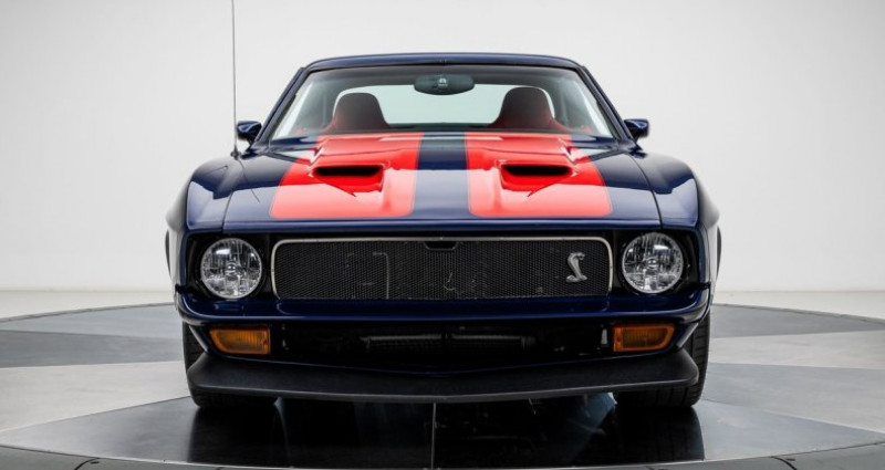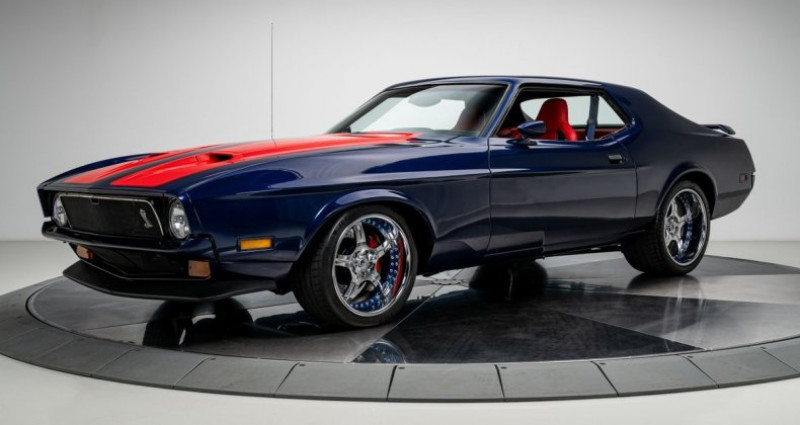 - Marque : Ford - Modèle : Mustang - Année : 1973 - Type de carrosserie : Coupe - Couleur extérieure : Bleu Mugello Blue Pearl et Rouge - Moteur : 4.6L Supercharged V8 - Transmission : Boîte manuelle à 6 vitesses - Kilométrage : 1 207 miles - Suspension : Heidts IRS - Freinage : Wilwood - Équipement intérieur : Cuir italien, GPS SpeedHut, climatisation, fenêtres électriques, système audio Rockford Fosgate avec SiriusXM et Bluetooth. Provenance : North Carolina. Disponibilité : environ 7 semaines, clés en main. 99 000 € tout compris (importation, taxes, procédure d'immatriculation). Annonce publiée le 12/12/2025