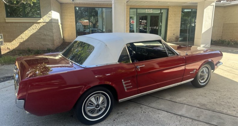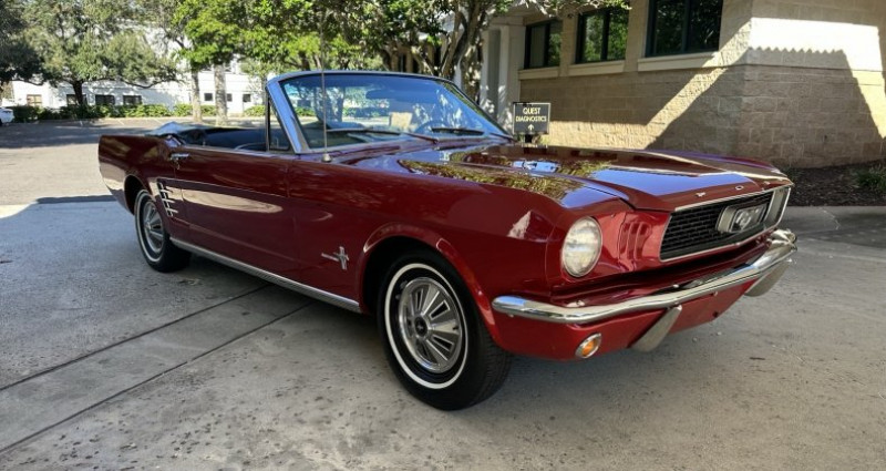 - Année : 1966 - Modèle : Ford Mustang - Type de moteur : T code 6 cylindres - Transmission : Automatique - Couleur : Rouge vif - Kilométrage : 100 000 miles - État : Garage-keepé, bien entretenu, sans problèmes de rouille - Toit : Convertible, fonctionne parfaitement - Intérieur : Propre, parfaitement fonctionnel - Titre : Propre. Provenance : Florida. Disponibilité : environ 7 semaines, clés en main. 28 500 € tout compris (importation, taxes, procédure d'immatriculation). Annonce publiée le 12/12/2025