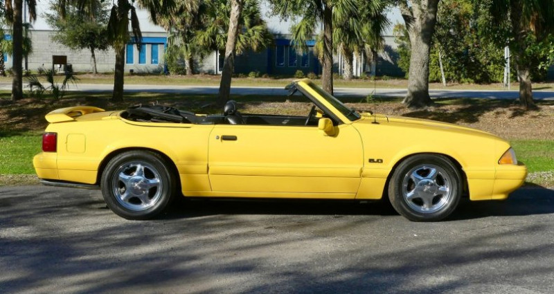 - Marque : Ford - Modèle : Mustang - Année : 1993 - Type de carrosserie : Cabriolet - Couleur extérieure : Jaune Chrome - Couleur intérieure : Noir - Moteur : 5.0 Litre V8 - Transmission : Automatique - Kilométrage : 91 950 Miles (environ 148 000 km) - Roues : Pneumatiques de type Pony, chromés - Suspension arrière : Quadri-amortisseur - Intérieur : Cuir noir, sièges « poney », volant cuir, siège conducteur réglable en hauteur avec réglage lumbar, régulateur de vitesse, rétroviseurs électriques réglables, système audio CD, climatisation, couverture de toit noir tissu électrique - Travaux récents : Nouveau couverture de toit, nouvelle peinture, contrôle technique récente par un atelier local. Provenance : Florida. Disponibilité : environ 7 semaines, clés en main. 26 000 € tout compris (importation, taxes, procédure d'immatriculation). Annonce publiée le 13/12/2025