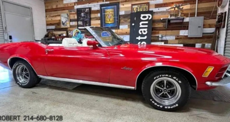 - Marque : Ford - Modèle : Mustang - Année : 1970 - Type de carrosserie : Cabriolet - Moteur : 351 Cleveland V8 5.8L - Transmission : 4 vitesses automatique - Couleur extérieure : Rouge - Couleur intérieure : Blanc - Boîte de vitesses : 9 arrière - Mileage : 74, 000 miles - Option : Volant à réglage de hauteur rare, Toit électrique neuf avec fenêtre vitrée rabattable, Jantes Magnum 500 neuves avec pneus neufs, Échappement personnalisé double, Intérieur intérieur deluxe blanc confort weave avec horloge et console originale, Miroirs Sport Mach 1 double, Peinture rouge neuve, Bumper chrome neuf, Poignées et bandes de moulures chrome neufs, Réservoir à carburant neuf de 22 gallons, Pompe à carburant électrique et envoi de carburant - Intérieur : Console centrale, Volant à aspect de bois, Tableau de bord, etc. - Condition : Rust free, pas de rust ou accidents, garé et pamperé - Quantité produite : 850 exemplaires avec ce code moteur - Documentation : Marti report attaché - Investissement : Bonne option pour un beau classique. Provenance : Texas. Disponibilité : environ 7 semaines, clés en main. 40 000 € tout compris (importation, taxes, procédure d'immatriculation). Annonce publiée le 14/12/2025