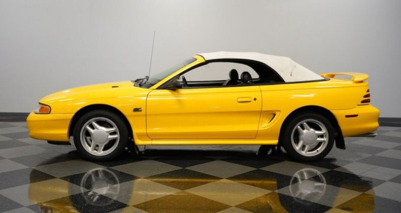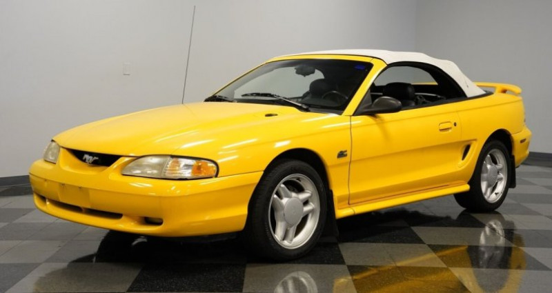 - Marque : Ford - Modèle : Mustang GT - Année : 1995 - Type de carrosserie : Cabriolet - Couleur extérieure : Jaune - Couleur intérieure : Noir cuir - Moteur : 4.6L V8 - Boîte de vitesses : 5 vitesses manuelle - Transmission : RWD - Pneus : 245/45ZR17 Goodyear Eagle - Kilométrage : 65 405 - Air conditionné : Oui - Autoradio : Oui - Siège électriques : Oui - Rétroviseurs électriques : Oui - Freins à disque avant : Oui - Rapport d'essieu arrière : 3.08 axle ratio - Limited Slip - Toit : White Power Convertible Top avec fenêtre arrière - Échappement : Double - Moteur d'origine : Oui - Moteur de style stock : Oui. Provenance : North Carolina. Disponibilité : environ 7 semaines, clés en main. 20 500 € tout compris (importation, taxes, procédure d'immatriculation). Annonce publiée le 14/12/2025