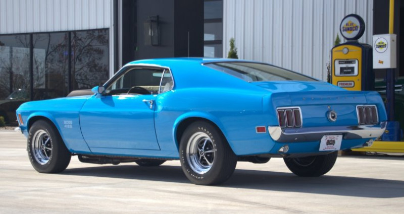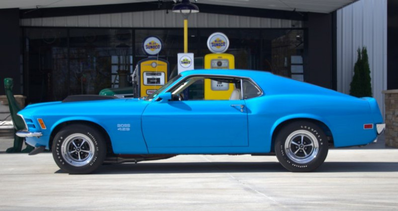 - Marque : Ford - Modèle : Mustang - Année : 1970 - Version spécifique : Boss 429 KK - Numéro d'identification : 0859 - Couleur extérieure : Blue Grabber - Couleur intérieure : Blanc - Type de carrosserie : 2 portes - Boîte de vitesses : Manuelle à rapport rapproché 4-vitesse - Moteur : 429 CI - Drivetrain : RWD - Kilométrage : 94, 177 miles - Différentiel arrière : 3.91:1 verrouillé - Radiateur : Ford - Régulateur de vitesse de moteur : Ceramique - Échappement : Coated Headers, Mandrel Bent, Flowmaster Mufflers - Freins : Freins à disques avant - Roues : Magnum - Pneus : Goodyear F60-15 - Scoop fonctionnel - Réservoir de batterie dans le coffre - Roue de secours - Système audio : AM/FM 8-Track - Volant : Rimblow - Boîte de vitesses : Hurst Shifter - Tachymètre arrière - Véhicule vendu dans l'état actuel - Aucune garantie sur le véhicule. Provenance : Kentucky. Disponibilité : environ 7 semaines, clés en main. 305 000 € tout compris (importation, taxes, procédure d'immatriculation). Annonce publiée le 15/12/2025