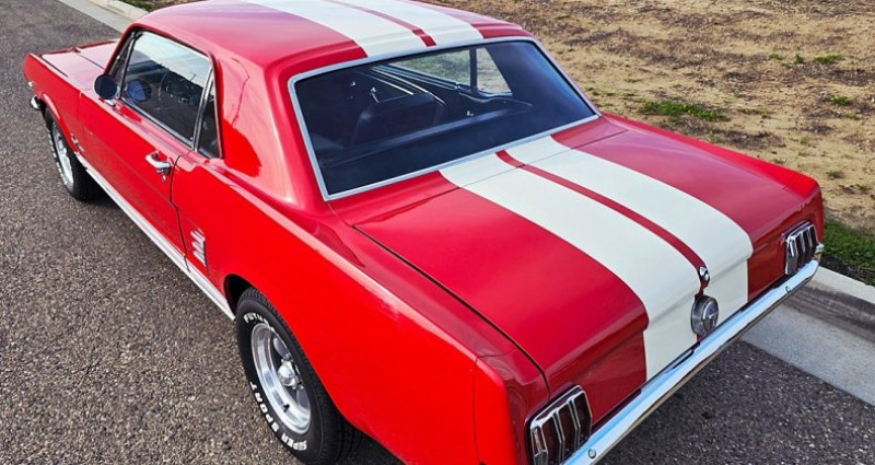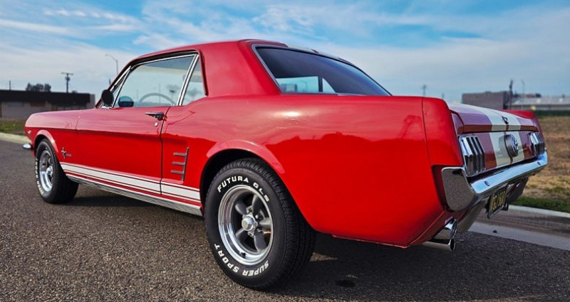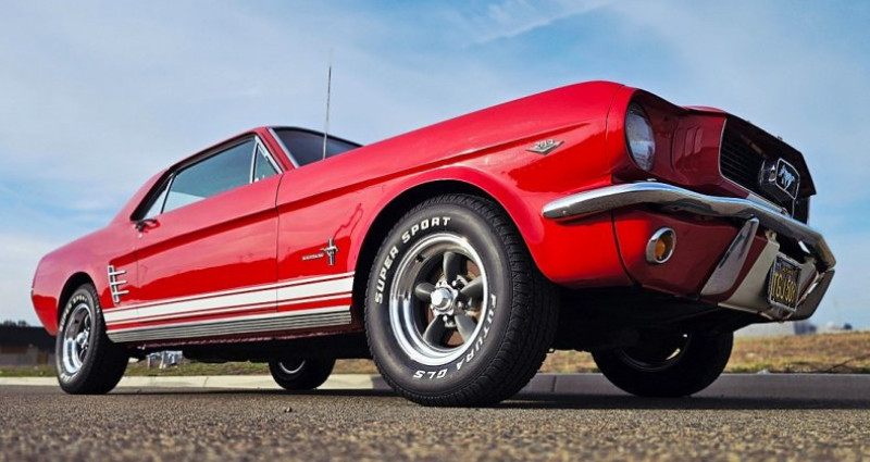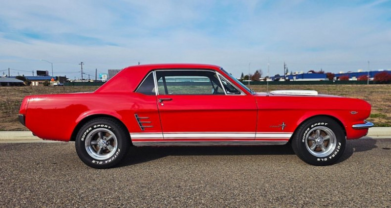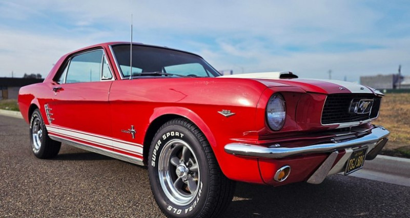 - Année : 1966 - Modèle : Ford Mustang C-code Coupe - Couleur : Rouge Rangoon Ford (extérieur) / Upholstery noir (intérieur) - État : Travaux de restauration récemment effectués, bon état de marche et de conduite - Plaques d'immatriculation : Californie - Moteur : 289 4.7-litre V8 Ford (original) - Boîte de vitesses : C4 trois vitesses automatique (original) - Pneus : American Racing 14x7 Torque Thrust II Alloy Wheels, 215/70/14 Futura Super Sport Radial Tires - Suspension : Suspension originale, freins manuels reconstruits, freins fonctionnels avec puissance d'arrêt suffisante - Détails : Bien nettoyé, corps de voiture solide et sans rouille, luminaires fonctionnels, sièges redonnés, radiateur, pompe à essence, courroies d'allumage, capot et coffre fonctionnels, radio original conservé, électricité fonctionnelle, boîte de vitesses, freins, suspension, carburateur, etc. en bon état.. Provenance : California. Disponibilité : environ 7 semaines, clés en main. 34 500 € tout compris (importation, taxes, procédure d'immatriculation). Annonce publiée le 16/12/2025