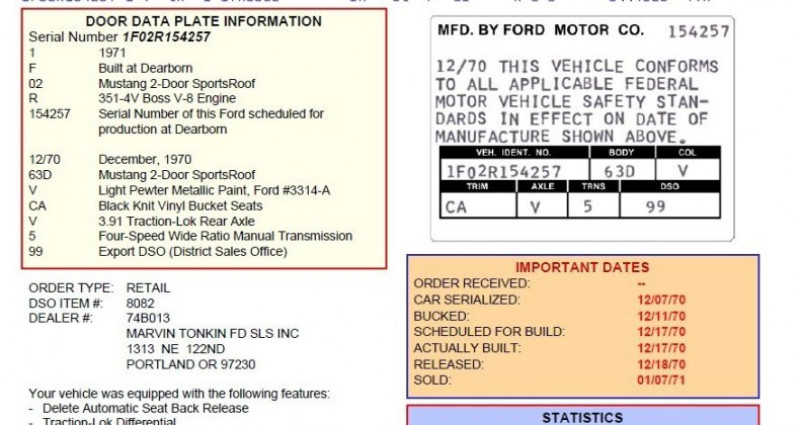 - Marque : Mustang - Année : 1971 - Modèle : Boss 351 - Couleur : Light Pewter Metallique - Intérieur : Mach 1, deux-ton bicolore noir et argent - Travaux : Restauration étendue - Kilométrage : Non mentionné - Moteur : D0AE-L Boss 351, stroker, 408 ci, plus de 400 ch - Transmission : VIN-compatible 4-vitesse Toploader - Pédales : Suspension améliorée par OpenTracker. Provenance : Texas. Disponibilité : environ 7 semaines, clés en main. 62 500 € tout compris (importation, taxes, procédure d'immatriculation). Annonce publiée le 26/12/2025