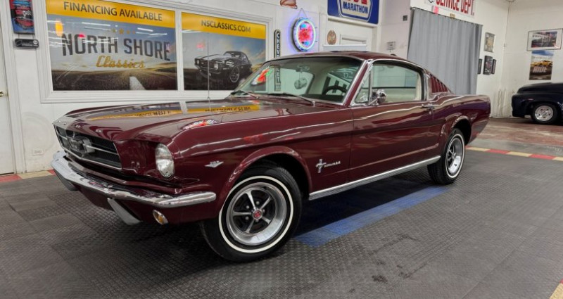 - Marque : Ford - Modèle : Mustang - Année : 1965 - Type : Fastback - Code moteur : C Code V8 - Transmission : Automatique - Couleur extérieure : Burgundy/Maroon - Intérieur : Blanc - Siège avant : Nouveaux couvertures - Kilométrage : 90 405 - État général : Bon fonctionnement. Provenance : Illinois. Disponibilité : environ 7 semaines, clés en main. 48 000 € tout compris (importation, taxes, procédure d'immatriculation). Annonce publiée le 26/12/2025
