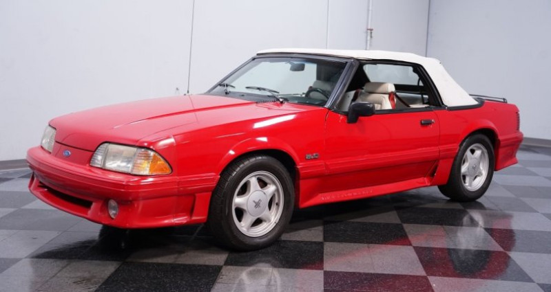- Marque : Ford - Modèle : Mustang GT - Année : 1990 - Type de carrosserie : Cabriolet - Couleur extérieure : Rouge Vermilion - Couleur intérieure : Blanc/Rouge - Moteur : 5.0L HO V8 - Boîte de vitesses : Automatique 4 vitesses - Transmission : RWD - Kilométrage : 19 126 miles - Freins avant : Disques de frein assistés par puissance - Suspension : Suspension à amortisseurs et barres anti-roulis - Système d'échappement : Double échappement - Système audio : AIWA AM/FM/CD amélioré - Options : Toit électrique, climatisation, commandes électriques pour les fenêtres, portes et miroirs, régulateur de vitesse, volant réglable en hauteur, prises de charge pour les appareils portables, panneaux de porte rouges et blancs, panneau de tableau de bord rouge et blanc, double support de tasse dans la tableau de bord.. Provenance : Georgia. Disponibilité : environ 7 semaines, clés en main. 29 500 € tout compris (importation, taxes, procédure d'immatriculation). Annonce publiée le 26/12/2025