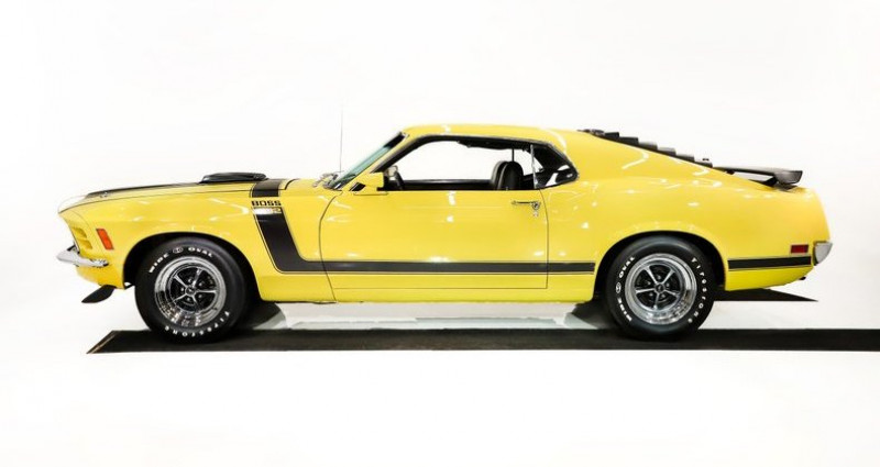 - Marque : Ford - Modèle : Mustang Boss 302 - Année : 1970 - Couleur : Grabber Yellow - État : Restauré à l'état original - Moteur : Boss 302 de 290 ch (environ 400 ch) - Transmission : Boîte manuelle 4 vitesses - Équipements : Système de freinage et de direction assistés, suspension compétition, échappement double, roues Magnum 500, jantes Firestone Wide Oval, arceau de toit, rétroviseurs sportifs, ailes spoilers, miroir de course, capot à souffle ram air - Intérieur : Intérieur intégralement conservé, tapis de sol remplacés, manuel d'utilisateur et brochure d'achat inclus - Trunk compartiment : Propre et complet, avec jante de secours et ensemble de jack inclus. Provenance : , USA. Disponibilité : environ 7 semaines, clés en main. 117 500 € tout compris (import, taxes, procédure d'immatriculation). Annonce publiée le 31/12/2025