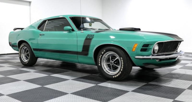 - Marque : Ford - Modèle : Mustang - Année : 1970 - Couleur extérieure : Vert - Couleur intérieure : Noir - Type de carrosserie : Fastback - Transmission : C4 Automatique - Moteur : 302 V8 - Kilométrage : 4485 miles - Options : Radio, volant et freins assistés, freins à disque avant, aide au freinage, radio après-marché, climatisation après-marché, roues Magnum 500, rétroviseurs extérieurs sportifs, rétroviseur extérieur latéral réglable à distance, capot Shaker, spoilers avant et arrière, lunettes arrière, tachymètre SunPro, culasse Edelbrock Performer RPM aluminium, culasse d'admission Edelbrock Performer RPM aluminium, allumage électronique, tuyaux d'échappement sonores, culasse en aluminium, tuyaux d'échappement longs, freins à main, direction assistée.. Provenance : Texas. Disponibilité : environ 7 semaines, clés en main. 57 000 € tout compris (importation, taxes, procédure d'immatriculation). Annonce publiée le 01/01/2026