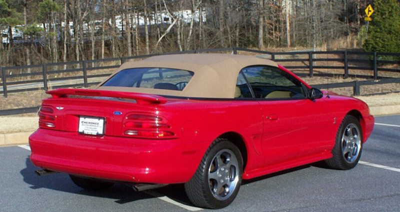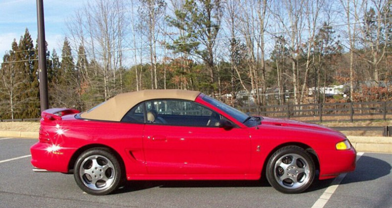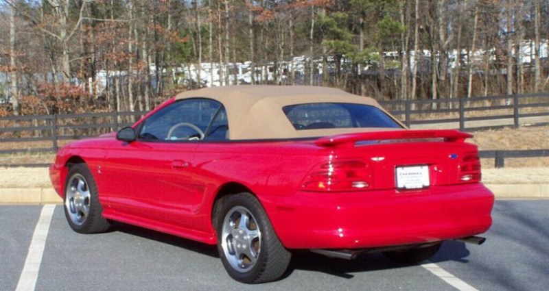 - Marque : Ford - Modèle : Mustang SVT Cobra - Type : 2 portes Cabriolet - Année : 1994 - VIN : 1FALP45D4RF161446 - Stock : 3738 - Kilométrage : 4 900 - Couleur : Rouge Rio - Transmission : Boîte manuelle à 5 vitesses - Moteur : 5.0L V8 EFI - MPG : 15 ville / 23 autoroute - Propulsion : RWD - Options : climatisation, axe arrière verrouillé, tapis de sol Cobra - État : 1 propriétaire, non restauré, original, 4 900 miles - Équipement original : manuels d'utilisateur, échappement double tube, système audio AM/FM-cass-CD, direction assistée, freinage assisté, fenêtres électriques, siège conducteur réglable électriquement à 4 voies, spoiler arrière, verrouillage centralisé, climatisation r-134A, régulateur de vitesse, volant réglable, rétroviseurs électriques, jacks, outils et roue de rechange dans l'état, odeur de neuf dans la benne et pneus qui semblent n'avoir jamais été sortis - Couleur des pneus : originales - État des peintures : spectaculaire, bumpers originaux, feux de Ford originaux, titre 1 propriétaire en main, état des joints et accessoires de bonne qualité, roues alliage originales et pneus qui résistent bien. Provenance : Georgia. Disponibilité : environ 7 semaines, clés en main. 38 000 € tout compris (importation, taxes, procédure d'immatriculation). Annonce publiée le 03/01/2026