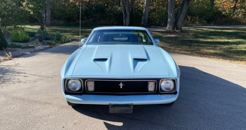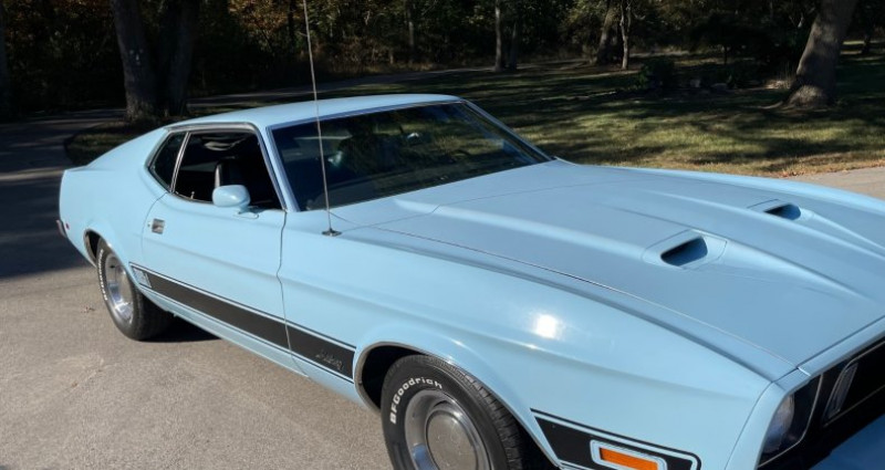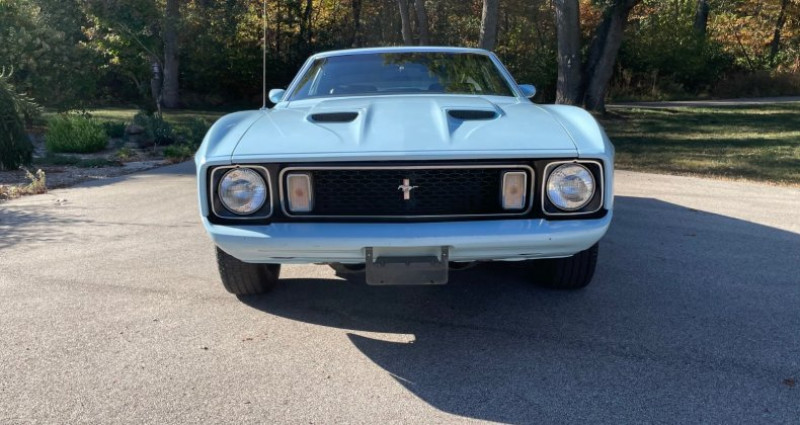 - Année : 1973 - Modèle : Mach 1 - Moteur : 351 CI 4V V-8 (Q code) - Boîte de vitesses : transmission manuelle 4 vitesses - Couleur extérieure : Light Blue code-3B - Intérieur : Noir - Air conditionné : Oui - Freins avant : ABS - Freins arrière : 3.25 conventional code-9 - Kilométrage : 40 004 miles (4 0004 kilomètres). Provenance : Indiana. Disponibilité : environ 7 semaines, clés en main. 58 500 € tout compris (importation, taxes, procédure d'immatriculation). Annonce publiée le 03/01/2026