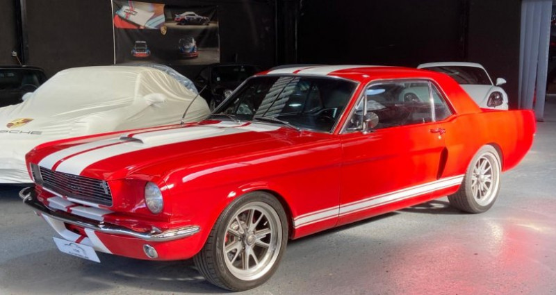 Vob automobiles ,votre specialsite Porsche , vous presente un tres bel exemplaire de Ford Mustang en version 289 ,restaurée par le passe, dans un etat remarquable - 01/1966 - V8 289 ci - Rouge - Cuir noir - Boite C4 topload - Allumage electronique - Jantes Shelby 17 - Frein a disque Wilwood avant - Freinage assiste - Climatisation - Direction assistée - Admission Edelbrock - Cache Culbuteur Edelbrock - Poulies chromee - Elements GT 350 ( entree d air capot , latterales , malle arriere ... Vehicule restauré , moteur , train roulant , interieur en superbe etat , peinture ( quelques defauts ) , strictement rien a prevoir . Visible sur RDV a Jouars dans le 78 .
