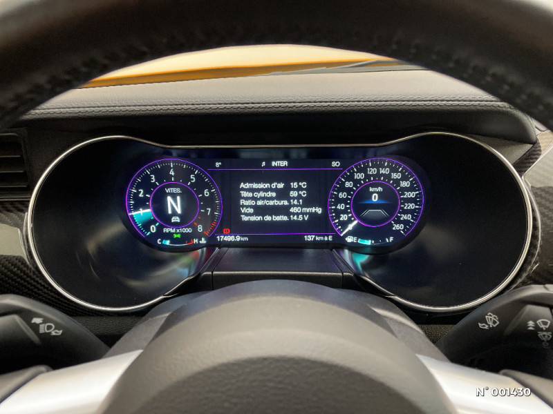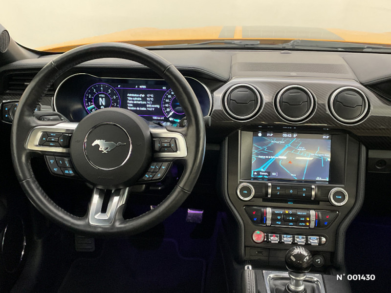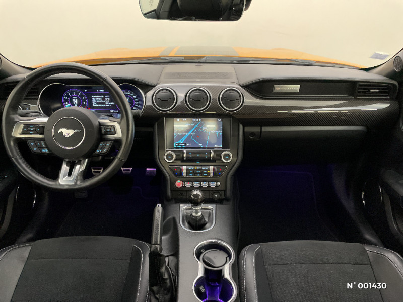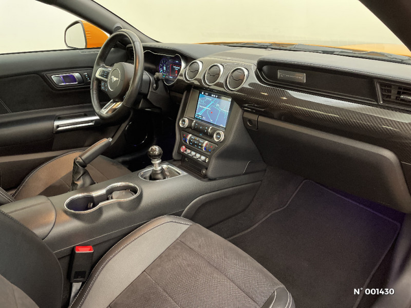 Tapis de sol AV / Aide au maintien dans la voie / Eclairage d'entrée avec projection du Pony sur le sol / Freins AV Brembo à 6 pistons / My Key / Trappe à carburant EasyFuel / Alarme volumétrique / Volant chauffant / Suspension Sport / Système multimedia avec Ford Sync III, intégré Apple Carplay et Andoid Auto / Pédalier Sport / Phares full LED / Rétroviseurs extérieurs électriques et chauffants couleur carrosserie, rabattables électriquement avec répétiteur / Echappement actif à quadruple sortie chromée / Jantes alliage 19" noires 10x2 branches avec pneus AV 255/40 R19 et AR 275/40 R19 / Kit de réparation des pneumatiques / Modes de conduite paramétrables (Normal, Sport+, Track et Neige) / Eclairage d'ambiance / KeyFree System - Entrée et démarrage mains libres / Ordinateur de bord couleur full digital 12" / Siège conducteur et passager Sport à réglages électriques 6 directions avec réglage lombaire intégré / Vitres électriques AV à impulsion et fermeture globale / Grille de calandre GT / Line-Lock verrouillage du train AV (Utilisation sur circuit uniquement) / Suspension AR indépendante / Ecrous de roues Antivol / ESP AdvanceTrac / 2 Porte-gobelets / Cerclage chromé des HP intégrés aux portes, des porte-gobelets, des buses de ventilation et des compteurs / Inserts de planche de bord finition aluminum / Plaques de seuil de portes rétro-éclairées / Frein à main gainé de cuir / ABS avec répartiteur électronique de freinage EBD / Rétroviseur intérieur photosensible / Alarme périmétrique