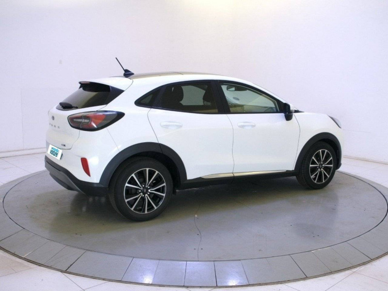 3ème appui-tête AR / 5 ceintures de sécurité 3 points / 5 Modes de conduite sélectionnables (normal / eco / faible adhérence / trail) / Aide au maintien dans la voie avec détection des bas-côtés / latéraux (thorax) et rideaux / Alerte de ceinture de sécurité AV/AR / Becquet AR couleur carrosserie / Combiné d'instrumentation TFT couleur 4.2 avec Ecomode / Console centrale avec accoudoir et rangements / Contours de vitres noir brillant / Désactivation de l'airbag passager / Eclairage d'ambiance intérieur / Environnement noir / Feux de route intelligents - Commutation automatique des feux de route aux feux de croisement / FordPass Connect avec modem embarqué et fonction E-Call / Frein AV à disques / Grille de calandre avec barres horizontales et contour façon chrome / Jantes alliage 17 10 branches finition Absolute Black (pour pneus toutes saisons 215/55 R17) / Kit de réparation pneumatique / Levier de frein à main Sensico / Levier de vitesse Sensico / Limiteur de vitesse intelligent (affichage instantané des limitations de vitesse sur le tableau de bord) / Pare-chocs couleur carrosserie / Peinture non métallisée Blanc Glacier / Phares antibrouillard AV avec fonction éclairage des angles / Plancher de coffre ajustable / Plaques de seuil de portes AV Titanium / Rétroviseurs extérieurs couleur carrosserie / réglables et rabattables électriquement avec rappel de clignotant intégré / Sellerie tissu noir Alhambra / Siège conducteur massant réglable en hauteur avec soutien lombaire / Siège passager massant réglable en hauteur avec soutien lombaire / Système audio Ford SYNC3 avec écran tactile 8 / commandes vocales / alerte contresens / compatible AppLink / 7 hauts-parleurs / Système de navigation Europe et points d'intérêts Michelin / Système de prévention de collision avec freinage post-collision et détection piétons / Système MyKey (seconde clé programmable) / Tapis de sol AV/AR avec surpiqûres / Trappe Easy Fuel / Volant 3 branches Sensico