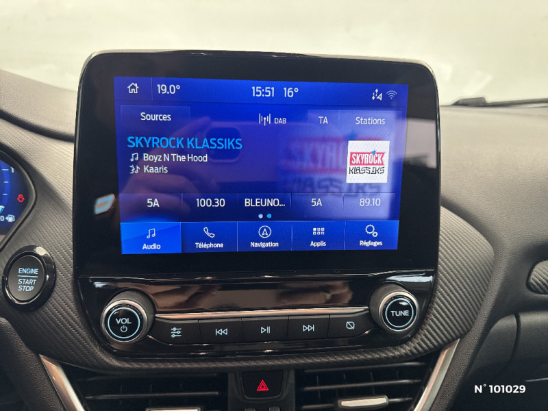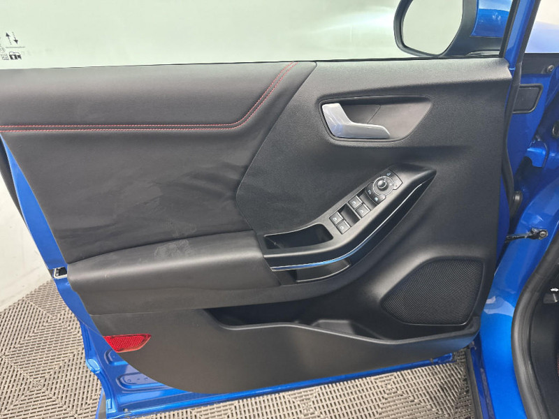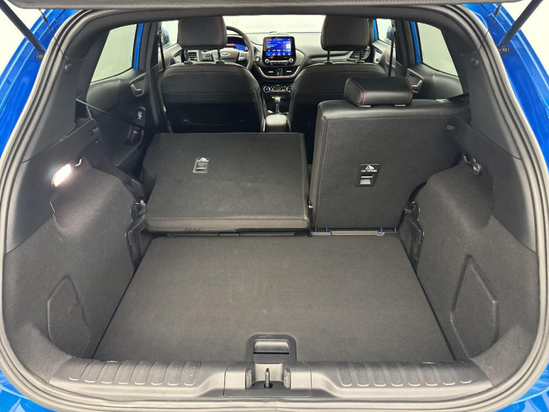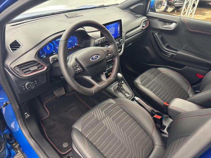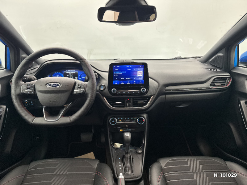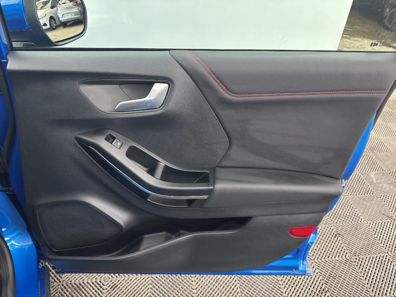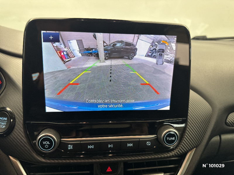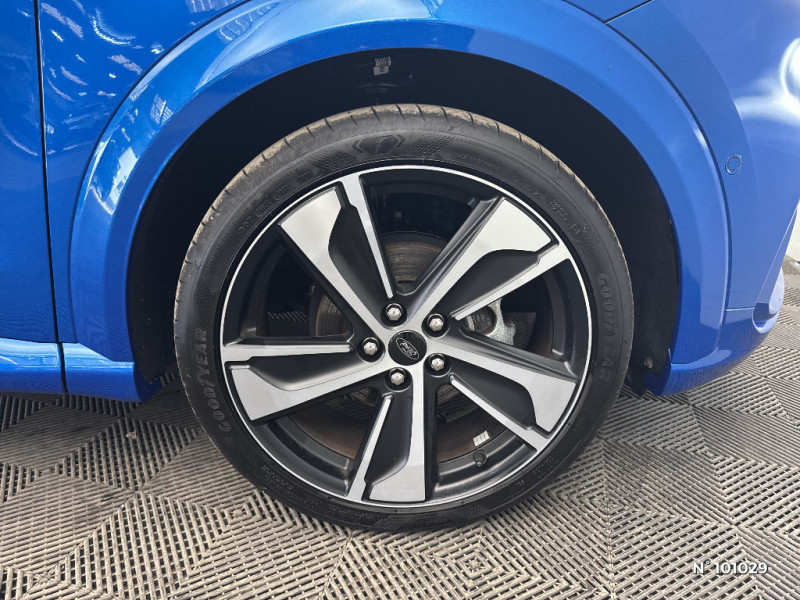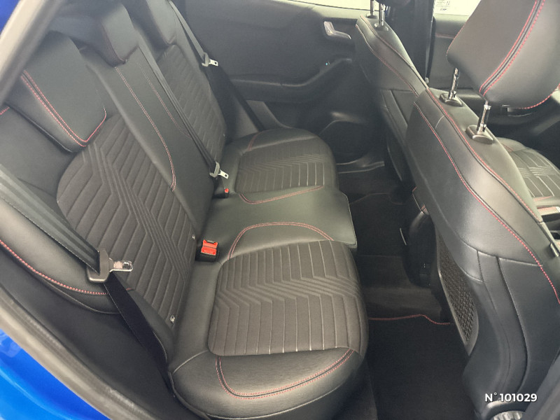 Trappe Easy Fuel / Feux de route intelligents - Commutation automatique des feux de route aux feux de croisement / Kit de carrosserie ST-Line / Système de navigation Europe et points d'intérêts Michelin / FordPass Connect avec modem embarqué et fonction E-Call / Siège passager réglable en hauteur avec soutien lombaire / Tapis de sol AV et AR avec surpiqures / Volant à méplat 3 branches ST-Line avec surpiqures / Aide au maintien dans la voie avec détection des bas-côtés / Limiteur de vitesse intelligent (affichage instantané des limitations de vitesse sur le tableau de bord) / 5 Modes de conduite sélectionnables (normal, eco, sport, faible adhérence, trail) / Système de prévention de collision avec freinage post-collision et détection piétons / Levier de vitesse Sensico / Désactivation de l'airbag passager / Grille de calandre active / Combiné d'instrumentation numérique 12.3" avec Ecomode / Sellerie Mixte tissu noir Eton noir avec renforts latéraux en Sensico Salerno et surpiqures rouges / Sellerie Mixte noire tissu Tire on Casual et Sensico Salerno / Jantes alliage 18" 5x2 branches finition Absolute Black (pour pneus 215/50 R18 92H) / Système audio B&O avec SYNC3 avec écran tactile 8", commandes vocales, 2 ports USB, compatible AppLink, Apple CarPlay et Android auto, 10 hauts-parleurs / Sortie d'echappement chromée / Levier de frein à main Sensico / Disques de frein AV / Rétroviseurs extérieurs couleur carrosserie électriques, dégivrants et rabattables électriquement avec éclairage d'approche / Becquet AR couleur carrosserie / Suspension Sport / Environnement noir / Grille de calandre ST-Line / Système MyKey (seconde clé programmable) / Badges extérieurs ST-Line / Rétroviseur intérieur électrochrome / Feux antibrouillard AV avec fonction éclairage d'angle / Kit de réparation pneumatique / Bouton de démarrage "Ford Power" / Eclairage d'ambiance intérieur / Console centrale avec accoudoir et rangements