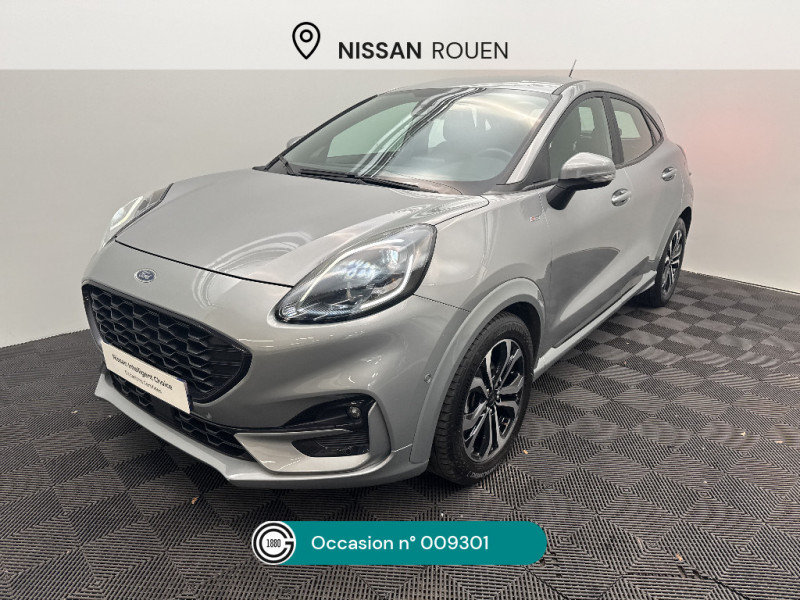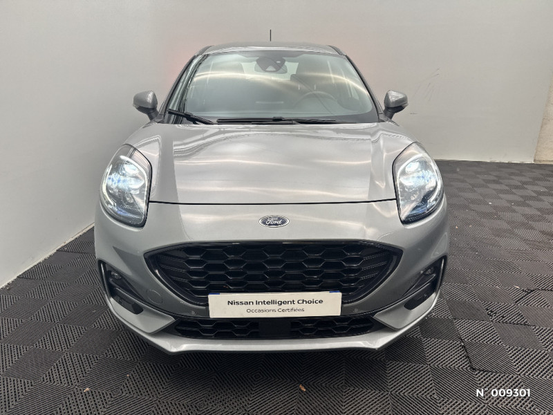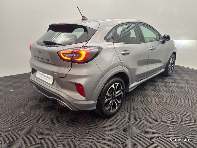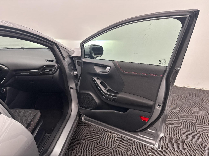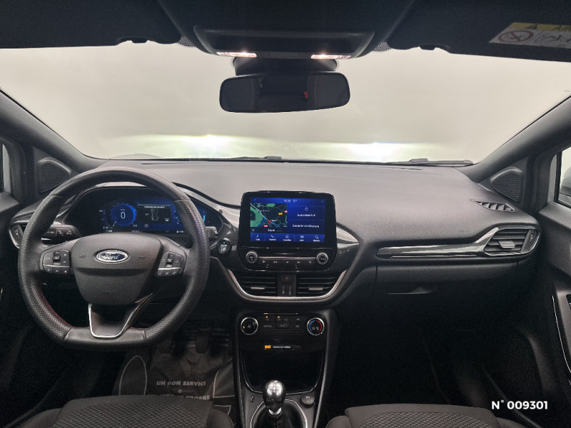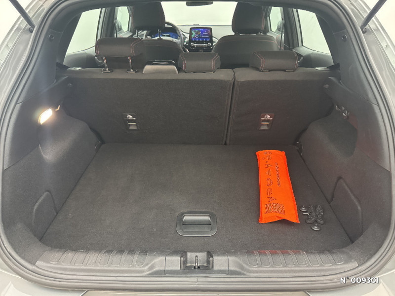 Volant à méplat 3 branches ST-Line avec surpiqûres / 3ème appui-tête AR / 5 Modes de conduite sélectionnables (normal, eco, sport, faible adhérence, trail) / Aide au maintien dans la voie avec détection des bas-côtés / Badges extérieurs ST-Line / Becquet AR couleur carrosserie / Bouton de démarrage "Ford Power" / Combiné d'instrumentalisation numérique 12.3" avec Ecomode / Environnement noir / Feux antibrouillard AV avec fonction éclairage d'angle / Feux de route intelligents - Commutation automatique des feux de route aux feux de croisement / FordPass Connect avec modem embarqué et fonction E-Call / Grille de calandre ST-Line / Jantes alliage 18" 5x2 branches finition Black Matt (pour pneus 215/50 R18 92H) / Kit de carrosserie ST-Line / Kit de réparation pneumatique / Levier de frein à main Sensico / Levier de vitesses Sensico avec insert aluminium / Limiteur de vitesse intelligent (affichage instantané des limitations de vitesse sur le tableau de bord) / Commandes Vocales / Console centrale avec accoudoir et rangements / Désactivation de l'airbag passager / Disques de frein AV / Disques de frein AV et AR / Eclairage d'ambiance intérieur / Pack Nav B&O / Pédalier Aluminium / Plancher de coffre ajustable / Plaques de seuil de portes AV ST-Line / Rétroviseur intérieur électrochrome / Rétroviseurs extérieurs couleur carrosserie électriques, dégivrants et rabattables électriquement avec éclairage d'approche / Sellerie Mixte tissu noir Tire on Casual avec renforts lateraux en Sensico Salemo et surpiqures rouges / Siège passager réglable en hauteur avec réglages lombaire / Siège passager réglable en hauteur avec soutien lombaire / Sortie d'echappement chromée / Suspension Sport / Système audio B&O avec SYNC3 avec écran tactile 8", commandes vocales, 2 ports USB, compatible AppLink, Apple CarPlay et Android auto, 10HP / Système de navigation Europe et points d'intérêts Michelin / Système de prévention de collision avec freinage post-collision et détection piétons / Système MyKey (seconde clé programmable) / Tapis de sol AV/AR avec surpiqûres / Trappe Easy Fuel