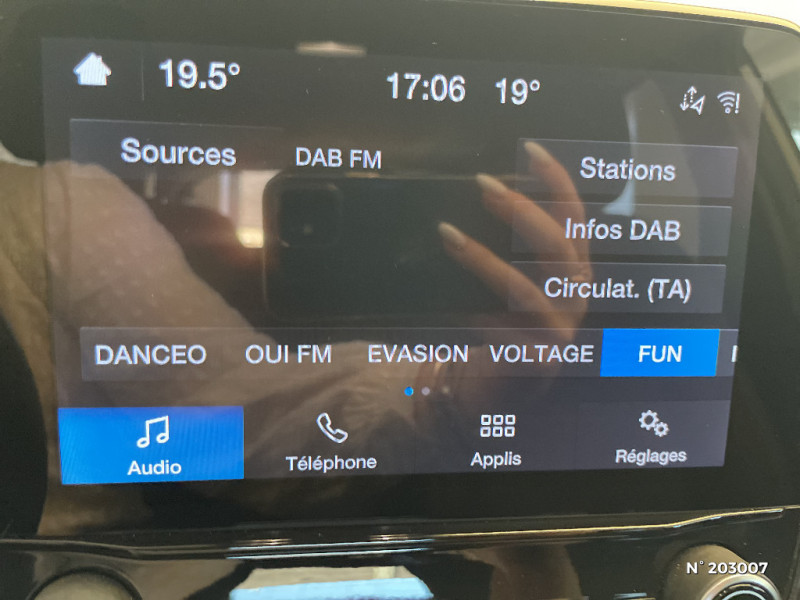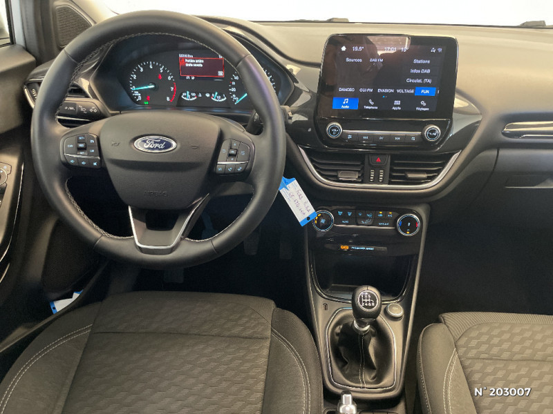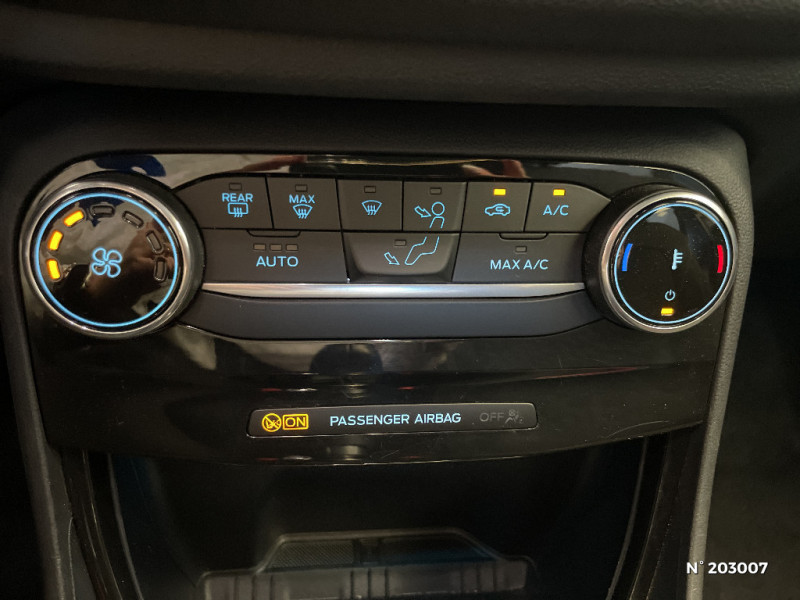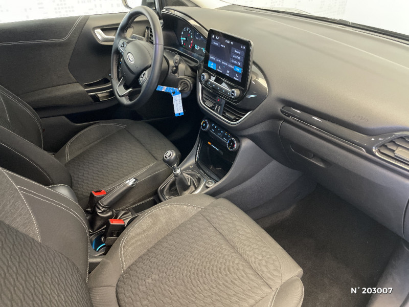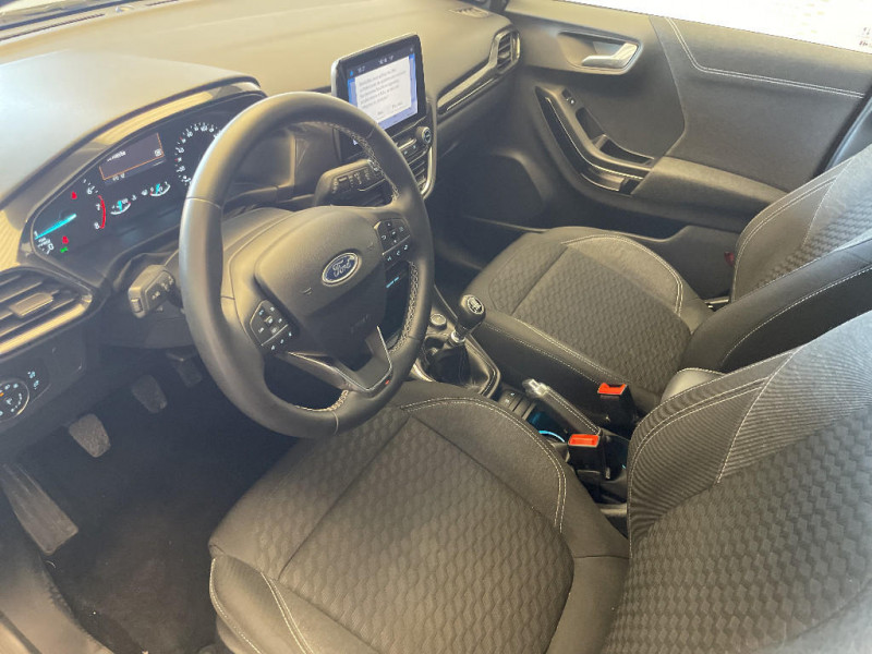 Système de prévention de collision avec freinage post-collision et détection piétons / Becquet couleur carrosserie / Combiné d'instrumentation TFT couleur 4.2" avec Ecomode / Console centrale avec accoudoir et rangements / Contours de vitres noir brillant / Désactivation de l'airbag passager / Système MyKey (seconde clé programmable) / Tapis de sol AV avec surpiqûres / Trappe Easy Fuel / Volant 3 branches Sensico / 3ème appui-tête AR / 5 Modes de conduite sélectionnables (normal, eco, sport, faible adhérence, trail) / Disques de frein AV / Eclairage d'ambiance intérieur / Feux de route intelligents - Commutation automatique des feux de route aux feux de croisement / FordPass Connect avec modem embarqué et fonction E-Call / Grille de calandre avec barres horizontales et contour faà§on chrome / Jantes acier 17" avec enjoliveur structuré 8 branches (pneus 215/55 R17) / Kit de réparation pneumatique / Levier de frein à main Sensico / Levier de vitesse Sensico / Limiteur de vitesse intelligent (affichage instantané des limitations de vitesse sur le tableau de bord) / Environnement noir / Navigation avec Système audio Ford SYNC3 avec écran tactile 8", commandes vocales, 2 ports USB, alerte contresens, compatible AppLink, Apple CarPlay et Android auto, 6 hauts-parleurs / Pare-chocs couleur carrosserie / Phares antibrouillard AV avec fonction éclairage des angles / Rétroviseurs extérieurs couleur carrosserie, chauffants, réglables et rabattables électriquement avec rappel de clignotant intégré / Sellerie tissu noir Kasbah / Aide au maintien dans la voie avec détection des bas-côtés