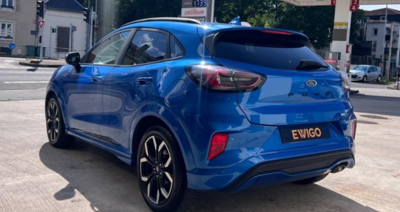 Ford Puma II 1.0 ECOBOOST 125 MHEV S&S ST-LINE X + HAYON ÉLECTIQUE + AUDIO B.O + CARPLAY crossover, suv, bleu, 6 cv, 5 portes, première mise en circulation le 25/01/2021, garantie 6 mois. - NOS SERVICES ET PRESTATIONS COMPLÉMENTAIRES - - Visite virtuelle : avant de vous déplacer, visualisez votre futur véhicule sous toutes ses coutures . Contactez-nous pour en voir plus ! - Extension de garantie jusqu'à 60 mois. - Solutions de Financement de 12 à 84 mois. - Livraison dans toute la France métropolitaine (sur devis). - Reprise possible de votre ancien véhicule. - Les informations délivrées par cette annonce sont non contractuelles et données à titre indicatif. Packs disponibles (véhicules éligibles au Label) - Pack Clés en Main - 691 € TTC(¹)(²) Démarches (hors carte grise) | 1/4 de carburant | Nettoyage First | Garantie 6 mois | Label inclus? - Pack Sérénité - 891 € TTC(¹)(²)- Démarches (hors carte grise) | 1/2 de carburant | Nettoyage Confort | Garantie 12 mois | Label inclus? - Pack Prestige - 1.091 € TTC(¹)(²) Démarches (hors carte grise) | Plein complet | Nettoyage Prestige | Garantie 12 mois | Label inclus? + Surprise du chef - (¹) Les véhicules non éligibles au Label bénéficient de tarifs préférentiels. Veuillez contacter votre conseiller pour obtenir les conditions tarifaires applicables. (²) Tarif pour les véhicules deux roues motrices dont la valeur de vente est inférieure à 60 000 € TTC. - - Accès transport en commun depuis la gare Nancy centre / Possibilité de venir vous chercher à la gare de Nancy centre - Véhicule visible sur rendez-vous - Du Lundi au Samedi de 9h à 18h30 - EWIGO NANCY - 144 rue du faubourg des trois maisons - 54000 NANCY - Tel : [Coordonnées masquées] 5 places OPTIONS ET ÉQUIPEMENTS : Audio - Télécommunications : - Android auto - Apple CARPLAY - DAB+ - Radio - Système Audio Bang & Olufsen - Bluetooth - GPS - Prise audio usb - commandes vocales - radio numérique Conduite : - Choix du mode de conduite - Essuies glaces automatiques - Stop & Start - allumage automatique des feux - démarrage sans clé - détecteur de pluie - limiteur de vitesse - régulateur de vitesse - sièges sport - suspension sport Extérieur : - Phares AR à led - Phares AV de jour à LED - Sortie d'échappement chromée - Système d'éclairage intelligent - Hayon électrique - jantes : aluminium - rétroviseurs rabattables - rétroviseurs électriques - système d'aide au stationnement Intérieur : - Banquette coulissante - Eclairage d'ambiance - Pédalier sport - Siège conducteur et passager avec réglage lombaire - Volant alu/cuir - Porte gobelet avant - accoudoir central - banquette 1/3 - 2/3 - climatisation : automatique - climatisation manuelle - fermeture centralisée - non fumeur - ordinateur de bord - rétroviseur interieur electrochrome - vitres surteintées - vitres électriques - volant réglable hauteur Pack : - Mode Eco - Mode sport - Recharge sans fil par induction - GPS couleur - anti démarrage - détecteur de lumière - nombre de rapports : 6 vitesses - volant multifonctions - volant réglable Sellerie : - Sellerie semi-cuir Sécurité : - Airbags - Alerte franchissement de lignes - Contrôle de pression des pneus - Radar anti-collision - Système de lecture des panneaux - ABS - Aide au demarrage en pente - ESP - aide au freinage d'urgence - airbags latéraux - fixations ISOFIX - phares antibrouillard - système d'appel d'urgence Autres équipements et informations : - Double des clés - Factures d'entretien - Mode normal - GPS tactile - Puissance kilowatt : 92 kw - USB - dimension des jantes : 18 pouces - puissance réelle : 125 ch - émission CO2 : 97 g/km - état : bon Référence annonce : d140076