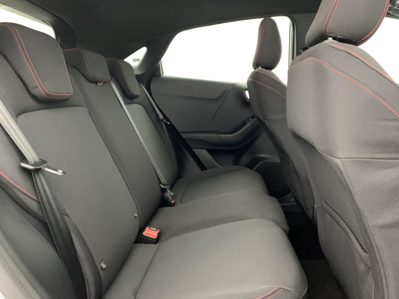 Console centrale avec accoudoir coulissant / Suspension Sport / Kit de réparation des pneumatiques / Rétroviseur intérieur électrochrome / Badge ST-Line / Pommeau de levier de vitesse gainé cuir avec surpiqures rouges / Alerte de véhicule en approche / Pédalier Aluminium / Rétroviseurs extérieurs électriques, chauffants avec répétiteur de clignotant et coque couleur carrosserie / Projecteurs LED avec feux de jour et commutateur de feux de route automatique / Freins à disques AV / Tambour AR / Planche de bord en vinyle Premium / Megabox (compartiment de rangement sous le plancher du coffre) / Assistant de pré collision avec freinage post collision / Système d'infodivertissement SYNC4 avec écran tactile 12" et commandes vocales, 2 ports USB, navigation, Apple CarPlay et Android auto, 6 haut-parleurs / Combiné d'instrumentalisation numérique 12.8" / Avertisseur de conduite à contre-sens / Assistance à la conduite économique / Système de contrôle de la trajectoire et de la stabilité avec assistant au freinage d'urgence et aide au démarrage en côte / Pneus eco 215/55 R17 / Kit carrosserie ST-Line (bouclier AV sport et diffuseur AR) / Arches de roue couleur carrosserie / Jupes latérales couleur carrosserie avec enjoliveur de porte argenté / Pommeau de levier de vitesse en Sensico / Plaques de seuil de portes en aluminium avec logo / Sièges AV en tissu avec surpiqûres rouges / Siège conducteur à réglage manuel 4 positions / Siège conducteur à réglage manuel 2 positions /