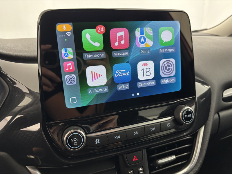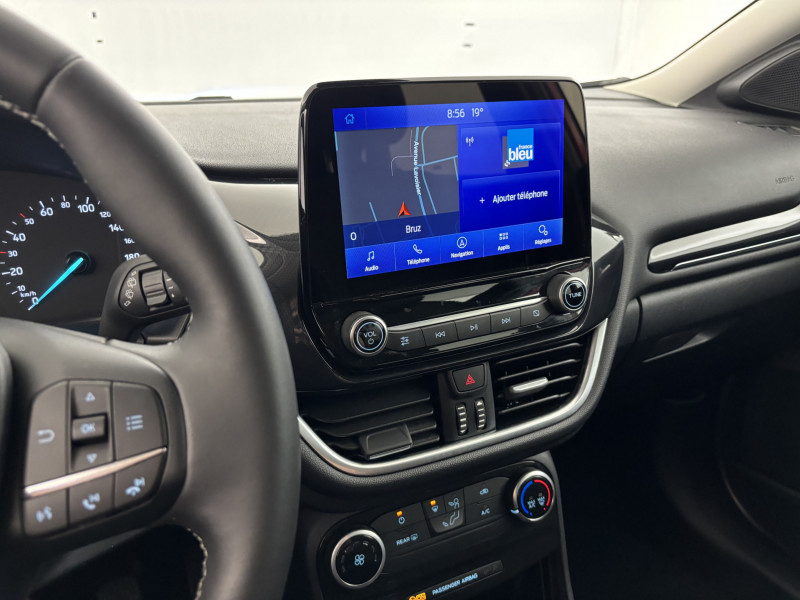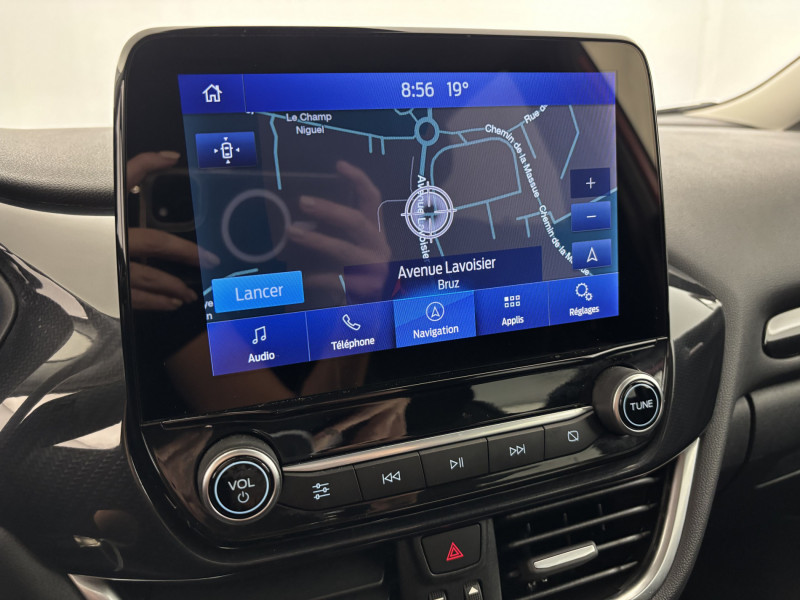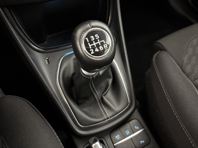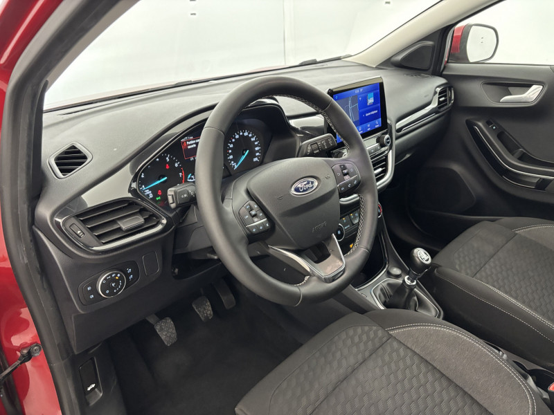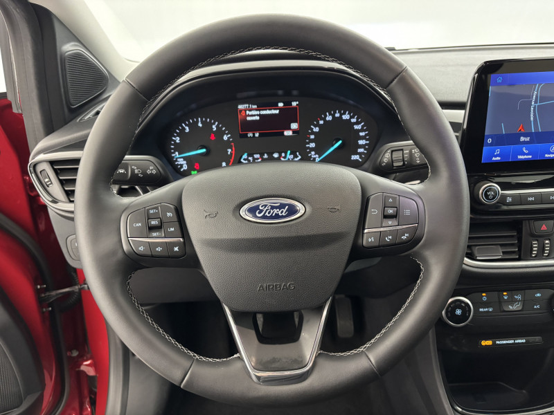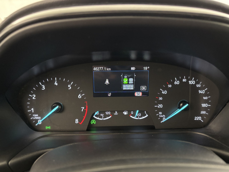 3ème appui-tête AR / 5 Modes de conduite sélectionnables (normal, eco, sport, faible adhérence, trail) / Aide au maintien dans la voie avec détection des bas-côtés / Becquet couleur carrosserie / Combiné d'instrumentation TFT couleur 4.2" avec Ecomode / Console centrale avec accoudoir et rangements / Contours de vitres noir brillant / Désactivation de l'airbag passager / Disques de frein AV / Eclairage d'ambiance intérieur / Environnement noir / Feux de route intelligents - Commutation automatique des feux de route aux feux de croisement / FordPass Connect avec modem embarqué et fonction E-Call / Grille de calandre Active / Grille de calandre avec barres horizontales et contour finition chromée / Jantes acier 17" avec enjoliveur structuré 8 branches (pneus 215/55 R17) / Kit de réparation pneumatique / Levier de frein à main Sensico / Levier de vitesse Sensico / Limiteur de vitesse intelligent (affichage instantané des limitations de vitesse sur le tableau de bord) / Pare-chocs couleur carrosserie / Phares antibrouillard AV avec fonction éclairage des angles / Rétroviseurs extérieurs couleur carrosserie électriques, dégivrants et rabattables électriquement avec clignotants intégrés / Sellerie tissu noir Kasbah / Système audio Ford SYNC3 avec écran tactile 8", commandes vocales, 2 ports USB, alerte contresens, compatible AppLink, Apple CarPlay et Android auto, 6 HP / Système de navigation Europe et points d'intérêts Michelin / Système de prévention de collision avec freinage post-collision et détection piétons / Système MyKey (seconde clé programmable) / Tapis de sol AV avec surpiqûres / Trappe Easy Fuel / Volant 3 branches Sensico /
