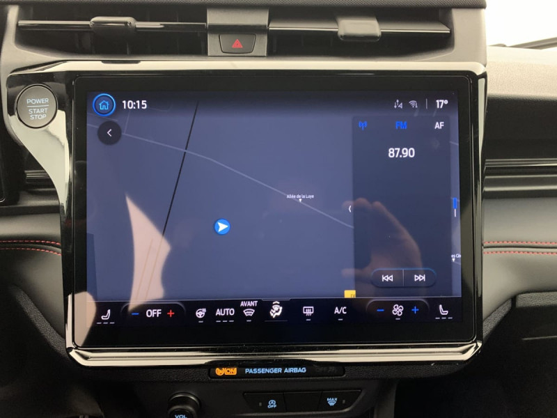 Console centrale avec accoudoir coulissant / Grille de calandre Active / Suspension Sport / Kit de réparation des pneumatiques / Rétroviseur intérieur électrochrome / Badge ST-Line / Pommeau de levier de vitesse gainé cuir avec surpiqures rouges / Alerte de véhicule en approche / Pédalier Aluminium / Rétroviseurs extérieurs électriques, chauffants avec répétiteur de clignotant et coque couleur carrosserie / Projecteurs LED avec feux de jour et commutateur de feux de route automatique / Freins à disques AV / Planche de bord en vinyle Premium / Ciel de toit avec pare-soleil éclairés / Megabox (compartiment de rangement sous le plancher du coffre) / Assistant de pré collision avec freinage post collision / Système d'infodivertissement SYNC4 avec écran tactile 12" et commandes vocales, 2 ports USB, navigation, Apple CarPlay et Android auto, 6 HP / Combiné d'instrumentalisation numérique 12.8" / Avertisseur de conduite à contre-sens / Assistance à la conduite économique / Système de contrôle de la trajectoire et de la stabilité avec assistant au freinage d'urgence et aide au démarrage en côte / Kit carrosserie ST-Line (bouclier AV sport et diffuseur AR) / Arches de roue couleur carrosserie / Pommeau de levier de vitesse en Sensico / Plaques de seuil de portes en aluminium avec logo / Sièges AV en tissu avec surpiqûres rouges / Frein à tambour AR / Volant en cuir Sensico perforé / Rétroviseurs extérieurs couleur carrosserie / Contrôle de la traction (TCS) / Boîte automatique 7 vitesses / Siège conducteur à réglage manuel 4 positions / Siège passager à réglage manuel 2 positions / Jupes latérales couleur carrosserie /