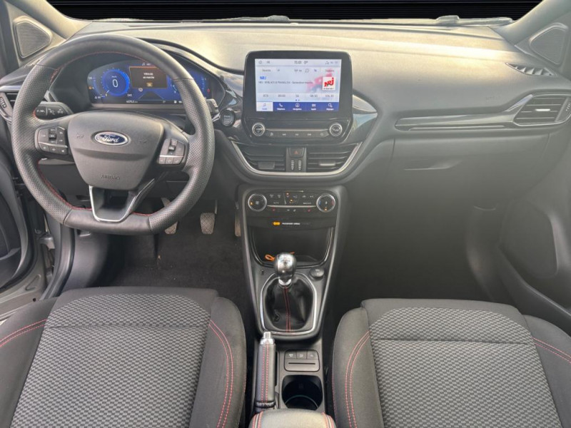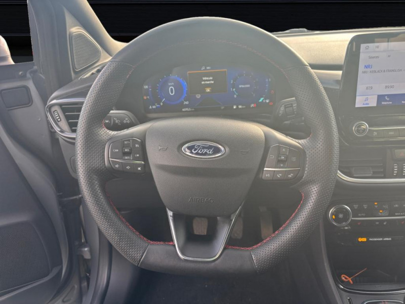 adhérence, trail) / Alerte doubli de ceintures avant/arrière / Badges ST-Line / Bas de caisse couleur carrosserie / Becquet arrière couleur carrosserie / Bouton de démarrage "Ford Power" / Combiné dinstrumentation numérique 12,3" avec Ecomode / Console centrale avant avec deux porte-gobelets rétroéclairés / Console centrale avec accoudoir et rangements / Contour des vitres latérales en noir finition brillante / Désactivation de lairbag du passager avant / Eclairage dambiance intérieur / Essuie-glace avec intermittence réglable et système antigoutte / Feux de route intelligents (passage feux de croisement/route