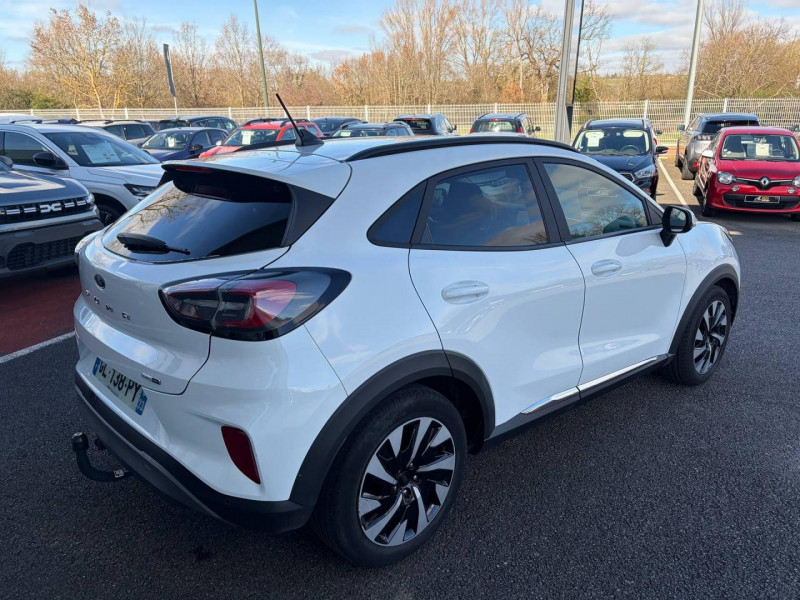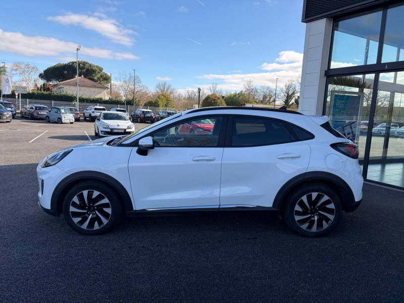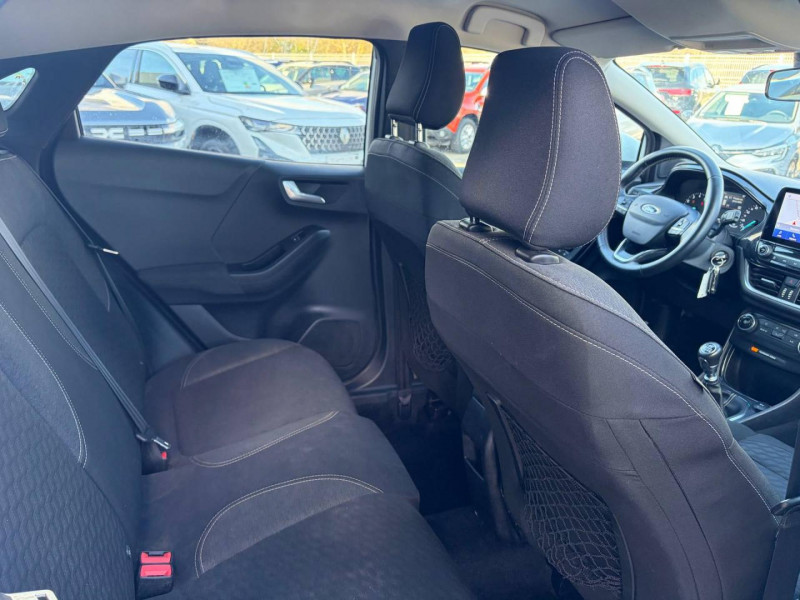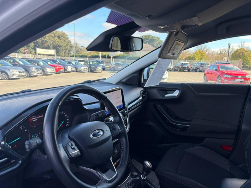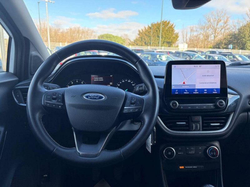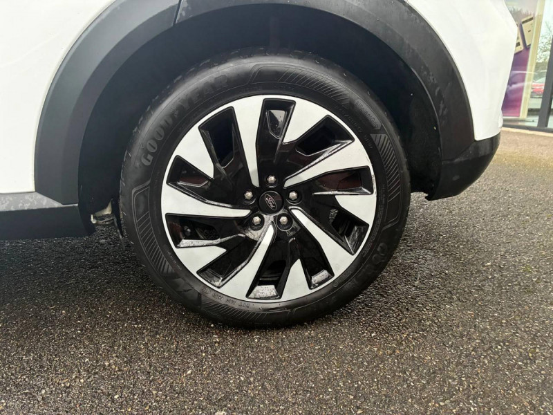 5 Modes de conduite sélectionnables (normal, eco, sport, faible adhérence, trail) / Aide au maintien dans la voie avec détection des bas-côtés / Alerte d'oubli de ceintures avant/arrière / Bas de caisse avec finitions chromées / Becquet arrière couleur carrosserie / Combiné d'instrumentation TFT couleur 4,2" avec Ecomode / Console centrale avant avec deux porte-gobelets rétroéclairés / Console centrale avec accoudoir et rangements / Contour des vitres latérales en noir finition brillante / Désactivation de l'airbag du passager avant / Eclairage d'ambiance intérieur / Essuie-glace avec intermittence réglable et système antigoutte / Feux de route intelligents (passage feux de croisement/route automatique) / FordPass Connect avec modem embarqué et fonction eCall / Frein à disques à l'avant / Grille de calandre avec barres horizontales et contour façon chrome / Jantes acier 17" avec enjoliveur structuré 8 branches / Kit de réparation pneumatique / Levier de frein à main gainé de Sensico / Levier de vitesses gainé de Sensico / Logo Flexifuel sur le hayon / Pare-chocs couleur carrosserie / Pédalier design / Phares avant antibrouillard avec fonction d'éclairage d'angle / Planche de bord en cuir / Plancher de coffre ajustable / Prise 12 V sur console centrale avant / Rétroviseurs extérieurs électriques couleur carrosserie, dégivrant et rabattables avec rappels de clignotants / Sellerie tissu noir Kasbah avec renforts latéraux Eton / Suspension standard / Système audio Ford SYNC 3 avec écran tactile 8", commandes vocales, 2 ports USB, alerte contresens, Apple CarPlay et Android auto, 6 hauts-parleurs / Système de freinage antiblocage (ABS) / Système de Navigation Europe et points d'intérêt Michelin / Système de prévention de collision avec freinage post-collision et détection piétons / Système MyKey (seconde clé programmable) / Tapis de sol avant avec surpiqures / Trappe à carburant Ford EasyFuel / Vitres électriques avant et arrière avec descente et remontée à impulsion / Volant 3 branches Sensico