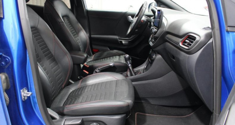======= OPTIONS ======= Frais de dossier 690 euros Hayon électrique mains libres avec KeyFree et bouton Ford Power Pack Extérieur Noir Phares Full LED fixe ======= EQUIPEMENTS DE SERIE ======= Badges ST-Line Diffuseur intégré dans le pare-chocs arrière Feux arrière à LED Logo MHEV sur Hayon Suspensions sport Système audio B&O avec radio numérique DAB, SYNC 3 avec écran tactile 8, commandes vocales, 2 ports USB, compatible AppLink, Apple CarPlay et Android auto, 10 hauts-parleurs Système MyKey (seconde clé programmable) Volant à méplat 3 branches ST-Line avec surpiqûres rouges Nb. Vitesses : 6 Conso Mixte : l/100