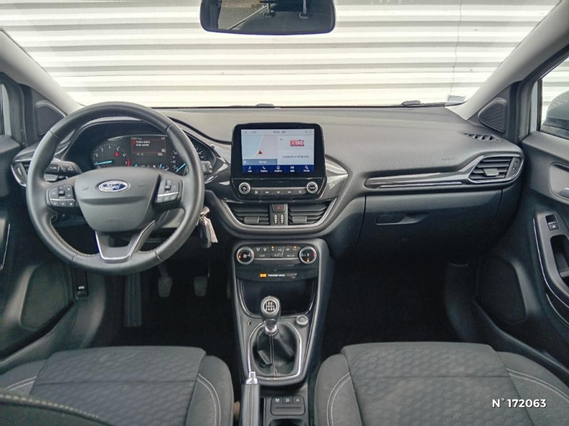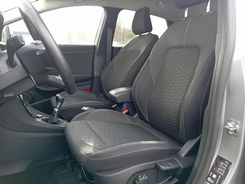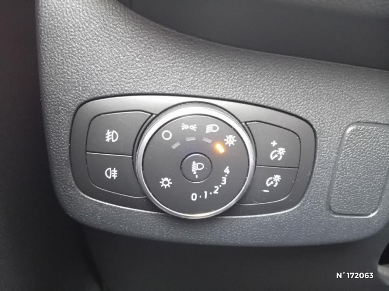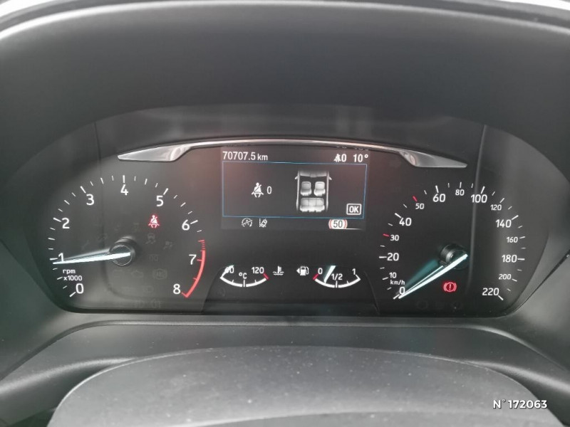 Console centrale avec accoudoir et rangements / Trappe Easy Fuel / Feux de route intelligents - Commutation automatique des feux de route aux feux de croisement / Grille de calandre avec barres horizontales et contour façon chrome / Système de navigation Europe et points d'intérêts Michelin / Rétroviseurs extérieurs couleur carrosserie, chauffants, réglables et rabattables électriquement avec rappel de clignotant intégré / Contours de vitres noir brillant / Phares antibrouillard AV avec fonction éclairage des angles / Combiné d'instrumentalisation TFT couleur 4.2" avec Ecomode / FordPass Connect avec modem embarqué et fonction E-Call / Siège passager réglable en hauteur avec soutien lombaire / Système audio Ford SYNC3 avec écran tactile 8", commandes vocales, 2 ports USB, alerte contresens, compatible AppLink, Apple CarPlay et Android auto, 7 hauts-parleurs / Aide au maintien dans la voie avec détection des bas-côtés / Limiteur de vitesse intelligent (affichage instantané des limitations de vitesse sur le tableau de bord) / 5 Modes de conduite sélectionnables (normal, eco, sport, faible adhérence, trail) / Système de prévention de collision avec freinage post-collision et détection piétons / Sellerie tissu noir Alhambra / Becquet couleur carrosserie / Levier de vitesse Sensico / Volant 3 branches Sensico / Levier de frein à main Sensico / Disques de frein AV / Jantes alliage 17" 10 branches finition Absolute Black (pour pneus toutes saisons 215/55 R17) / Tapis de sol AV avec surpiqures / Système audio Ford SYNC3 avec écran tactile 8", commandes vocales, 2 ports USB, alerte contresens, compatible AppLink, Apple CarPlay et Android auto, 6 hauts-parleurs / Pare-chocs couleur carrosserie / Kit de réparation pneumatique / Eclairage d'ambiance intérieur / Désactivation de l'airbag passager / Environnement noir / Système MyKey (seconde clé programmable)