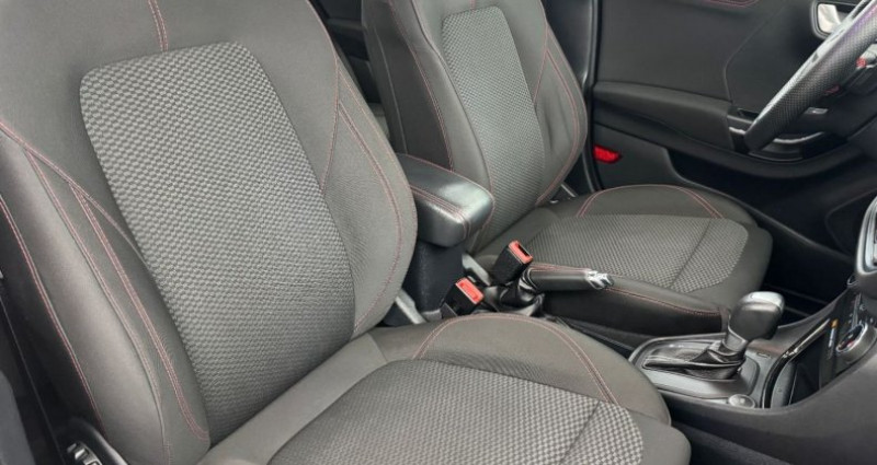 Cylindrée : 999 cm3 EQUIPEMENTS Allumage automatique des feux, Banquette AR rabattable 60/40, Alerte de franchissement involontaire de ligne, Airbags frontaux latéraux (thorax) et rideaux, Badges extérieurs ST/Line, Alerte de ceinture de sécurité AV/AR, Feux AR à LED, Becquet couleur carrosserie, 3ème appui/tête AR, Régulateur de vitesse, Sortie d'echappement chromée, Allumage automatique des essuie/glaces, Recharge de téléphone par induction, Bouton de démarrage Ford Power, Eclairage d'ambiance intérieur, Désactivation de l'airbag passager, Feux de jour à LED, Environnement noir, Grille de calandre ST/Line, Kit de carrosserie ST/Line, FordPass Connect avec modem embarqué et fonction E/Call, Jantes alliage 17 5x2 branches finition Black Machined (pour pneus toutes saisons 215/55 R17), Pack Confort, Peinture métallisée Fashion Gris Magnetic, Aide au stationnement AR, Aide au démarrage en côte, Direction assistée électrique, Reconnaissance des panneaux de signalisation, 2 Fixations ISOFIX aux places AR, Navigation avec Système audio Ford SYNC3 avec écran tactile 8 compatible AppLink Apple CarPlay et Android auto 6 hauts/parleurs, Levier de vitesse Sensico, Système de surveillance de la pression des pneus, Suspension Sport, Pack Hiver, Système de prévention de collision avec freinage post/collision et détection piétons, Sellerie tissu noir Court avec surpiqûres rouges, Siège conducteur a réglage manuelle en hauteur avec soutien lombaire, Rétroviseurs extérieurs couleur carrosserie électriques dégivrants et rabattables électriquement avec éclairage d'approche, Palettes au volant, Phares antibrouillard AV avec fonction éclairage des angles, Limiteur de vitesse intelligent (affichage instantané des limitations de vitesse sur le tableau de bord), Levier de frein à main Sensico, Console centrale avec accoudoir et rangements, Vitres AV/AR électriques à impulsion haut/bas, Aide au maintien dans la voie avec détection des bas/côtés, Correcteur électronique de trajectoire (ESP), 5 Modes de conduite sélectionnables (normal eco sport faible adhérence trail), Volant à méplat 3 branches ST/Line avec surpiqûres rouges, Combiné d'instrumentation numérique 12.3 avec Ecomode,