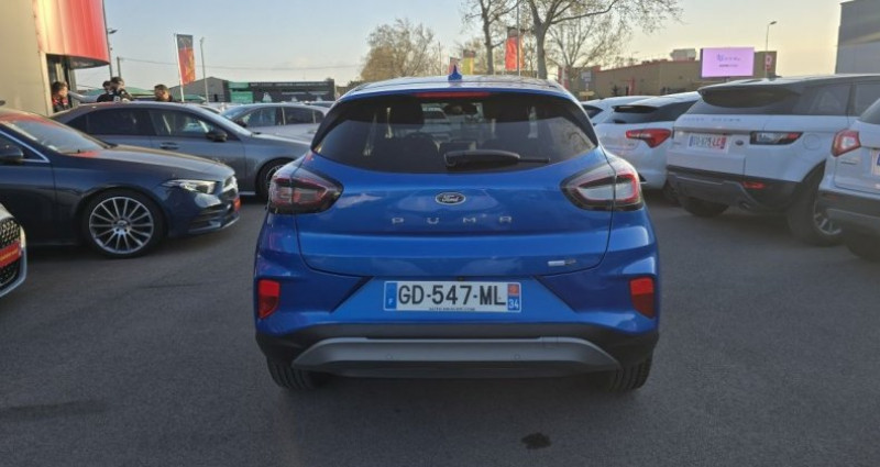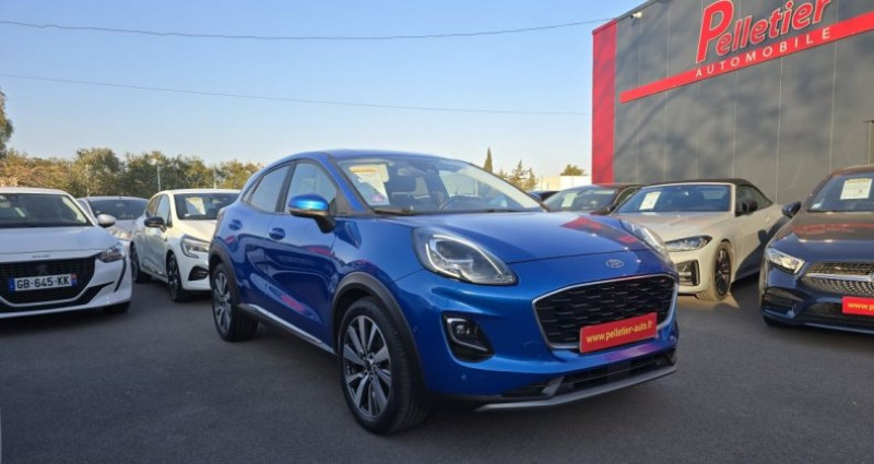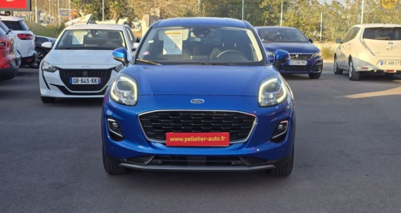 Ford Puma 125 ch mHEV SetS BVM6 Titanium X tout-terrain, bleu, 6 cv, 5 portes, première mise en circulation le 12/12/2021, garantie 3 mois. 5 places OPTIONS ET ÉQUIPEMENTS : Audio - Télécommunications : - ecran tactile Conduite : - sport - allumage automatique des feux - limiteur de vitesse - régulateur de vitesse - sièges sport Extérieur : - Aide au stationnement AR - Becquet couleur carrosserie - Commutation automatique des feux de route aux feux de croisement Intérieur : - Air conditionné manuel - Console centrale avec accoudoir et rangements - direction assistée - siège conducteur réglable en hauteur Pack : - Alerte de ceinture de sécurité AV/AR - Contours de vitres noir brillant - Disques de frein AV - Eclairage d'ambiance intérieur - Feux AR à LED - Levier de frein à main Sensico - Levier de vitesse Sensico - Pare-chocs couleur carrosserie - Rétroviseurs extérieurs couleur carrosserie - Système MyKey (seconde clé programmable) - eco - 5 ceintures de sécurité 3 points - Sieges arrières rabattable - appuis-tête arrière - détection des panneaux routiers - jantes : classiques - nombre de rapports : 6 vitesses - tapis de sol Sellerie : - Sellerie tissu noir Kasbah Sécurité : - Alerte de franchissement involontaire de ligne - latéraux (thorax) et rideaux - Aide au demarrage en pente - Assistant maintien dans la voie - ESP - airbag coté passager - airbags frontaux - contrôle pression des pneus - fixations ISOFIX - kit de dépannage pneumatique - phares antibrouillard Autres équipements et informations : - 5 Modes de conduite sélectionnables (normal - Combiné d'instrumentation TFT couleur 4.2 avec Ecomode - Environnement noir - Feux de route intelligents - FordPass Connect avec modem embarqué et fonction E-Call - Grille de calandre avec barres horizontales et contour façon chrome - Système de prévention de collision avec freinage post-collision et détection piétons - Trappe Easy Fuel - Vitres AV/AR électriques à impulsion haut/bas - Volant 3 branches Sensico - faible adhérence - trail) - Puissance kilowatt : 92 kw - feux de circulation diurne - puissance réelle : 125 ch Référence annonce : 118VO010743