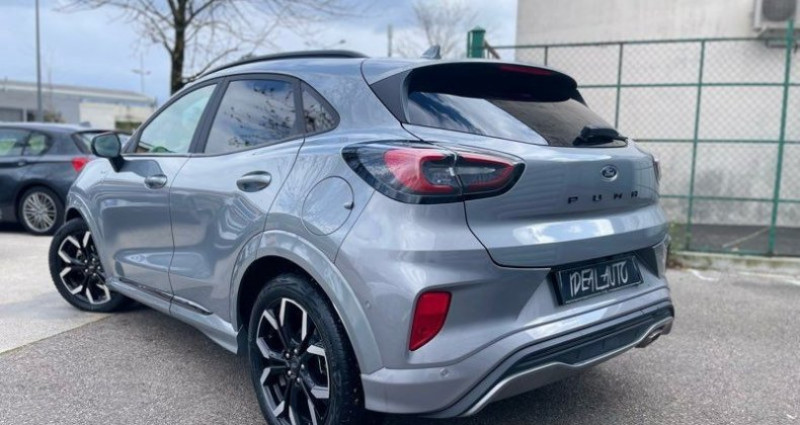 Ford Puma 1.0 EcoBoost 155ch S&S mHEV ST-Line Powershift, (S.U.V.), Gris Solar Premium, 8cv, 5 portes, mise en circulation le 28-08-2023, première main, garantie 12 mois. 5 places, longueur : 4,19 mètres, poids en charge 1830 Kg, boîte de vitesse : automatique OPTIONS ET EQUIPEMENTS : Audio - Télécommunications - 10 Haut parleurs - Appel d'Urgence Localisé - Commandes du système audio au volant - Commandes vocales - Ecran tactile - GPS Cartographique - Interface Media - Kit mains-libres Bluetooth - Prise USB - Radio - Radio numérique DAB - Système Hi-Fi Surround - TMC Conduite - Aide au démarrage en côte - Arrêt et redémarrage auto. du moteur - Capteur de luminosité - Capteur de pluie - Démarrage sans clé - Limiteur de vitesse - Mode de conduite - Palettes changement vitesses au volant - Régulateur de vitesse - Suspensions Sport Extérieur - Aide au stationnement - Becquet arrière - Boucliers AV et AR couleur caisse - Caméra de recul - Eclairage statique d'intersection - Feux arrière à LED - Feux de jour à LED - Jantes Alu 18 pouces - Pare-brise acoustique - Phares à LED - Radar de stationnement AR - Répétiteurs de clignotant dans rétro ext - Rétroviseurs dégivrants - Rétroviseurs rabattables électriquement - Rétroviseurs électriques - Sortie d'échappement chromée - Système d'éclairage intelligent Intérieur - Accoudoir central AV avec rangement - Banquette 60/40 - Banquette AR rabattable - Clim automatique - Compte tours - Eclairage d'ambiance - Ecran multifonction couleur - Filtre à Pollen - Fixations Isofix aux places arrières - Lunette arrière surteintée - Ouverture des vitres séquentielle - Plancher de coffre mobile - Rétroviseur intérieur électrochrome - Siège conducteur avec réglage lombaire - Siège conducteur réglable en hauteur - Température extérieure - Verrouillage centralisé à distance - Vitres arrière surteintées - Vitres arrière électriques - Vitres avant électriques - Volant multifonction - Volant sport Sécurité - ABS - AFIL - Airbag conducteur - Airbag passager - Airbag passager déconnectable - Airbags latéraux avant - Airbags rideaux - Antidémarrage électronique - Détecteur de sous-gonflage - ESP - Freinage automatique d'urgence - Phares antibrouillard - Reconnaissance panneaux de signalisation - Système avancé de détection d'obstacles - Système de prévention des collisions - Système de sécurité post-collisions Autres équipements et informations : - Pack Securité Intégrale - Noir Eton/Sensico# Salerno+spq rges Reprise possible IDEAL AUTO 9 Boulevard Paul Langevin 38600 Fontaine